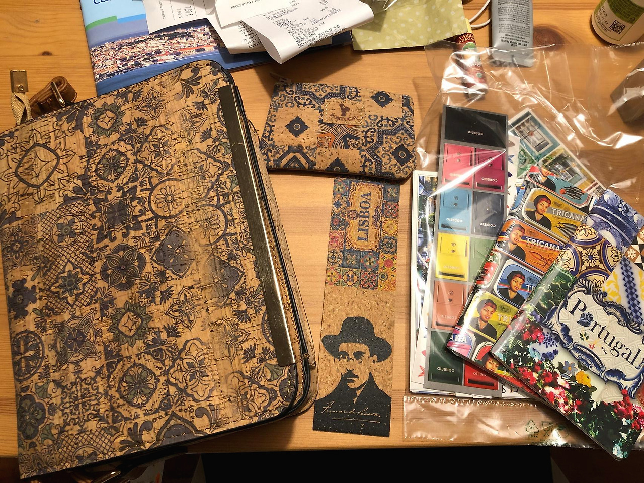 포르투갈에서 유명한 코르크로 만든 노트, 책갈피를 보았다. 나는 내가 한국에서 읽고 있던 <불안의 책>에 끼어둘 생각으로 코르크로 된 페소아 책갈피를 하나 샀다. 1유로로 다른 곳(0.4-5유로) 보다 비쌌지만 1유로의 행복이었다.