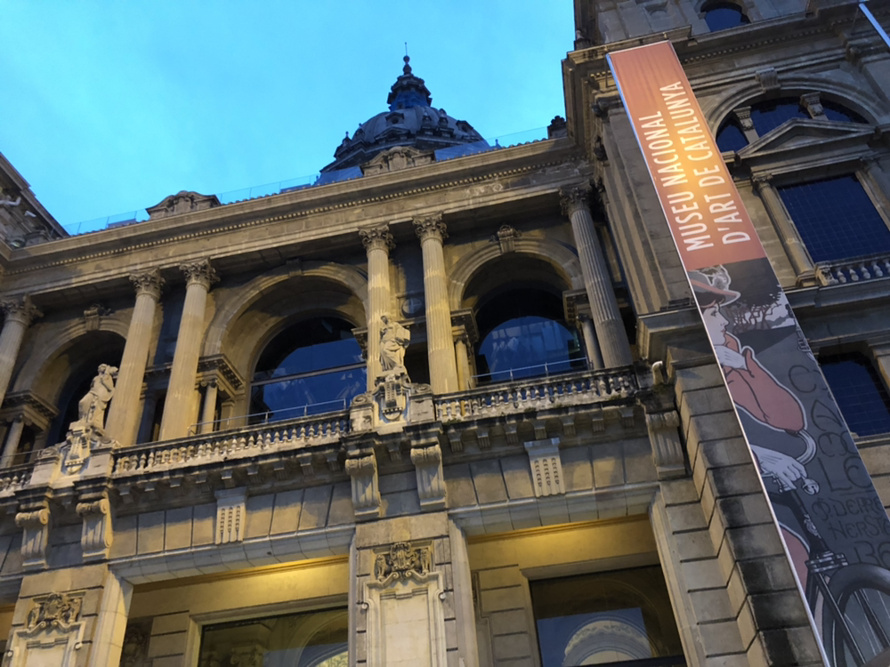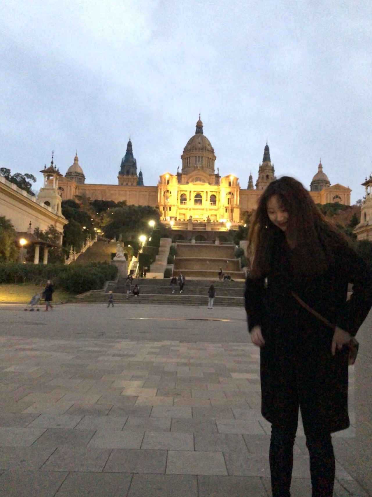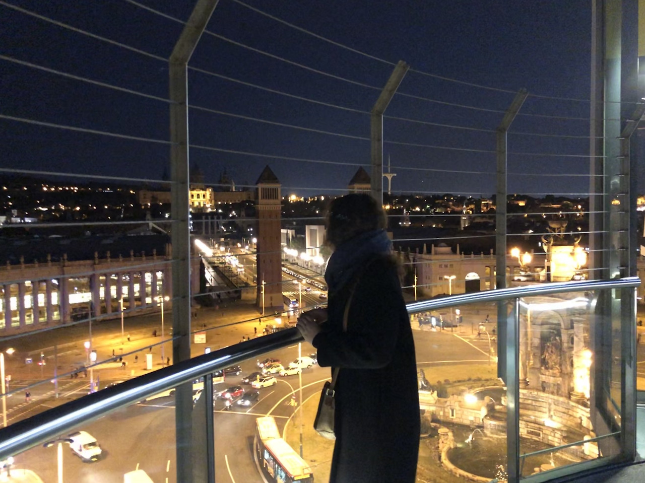 바르셀로나 마지막 밤. 6시에 닫는 카탈루냐 미술관을 마지막으로 계획했던 일정이 끝났다. 5시 50분쯤 미술관을 나오니 어느덧 해가 져 하늘이 회색빛이 되어 있었다. 미술관 앞에서 들어가기 전에도 버스킹 중이었는데, 나올 때도 연주가 들렸다. 익히 아는 팝송도 나와 반갑기도 하고 위에서 도시의 전경을 내려다보고 싶어 버스킹을 마주 보며 계단에 앉아있다 가기로 했다. 어느덧 세 번째 곡이 나오고 하늘은 깜깜해졌다. 도시에는 불빛이 켜졌고, 등지고 있던 카탈루냐 미술관의 화려한 건물도 노오란 조명을 받아 아늑하고 깊어 보였다.