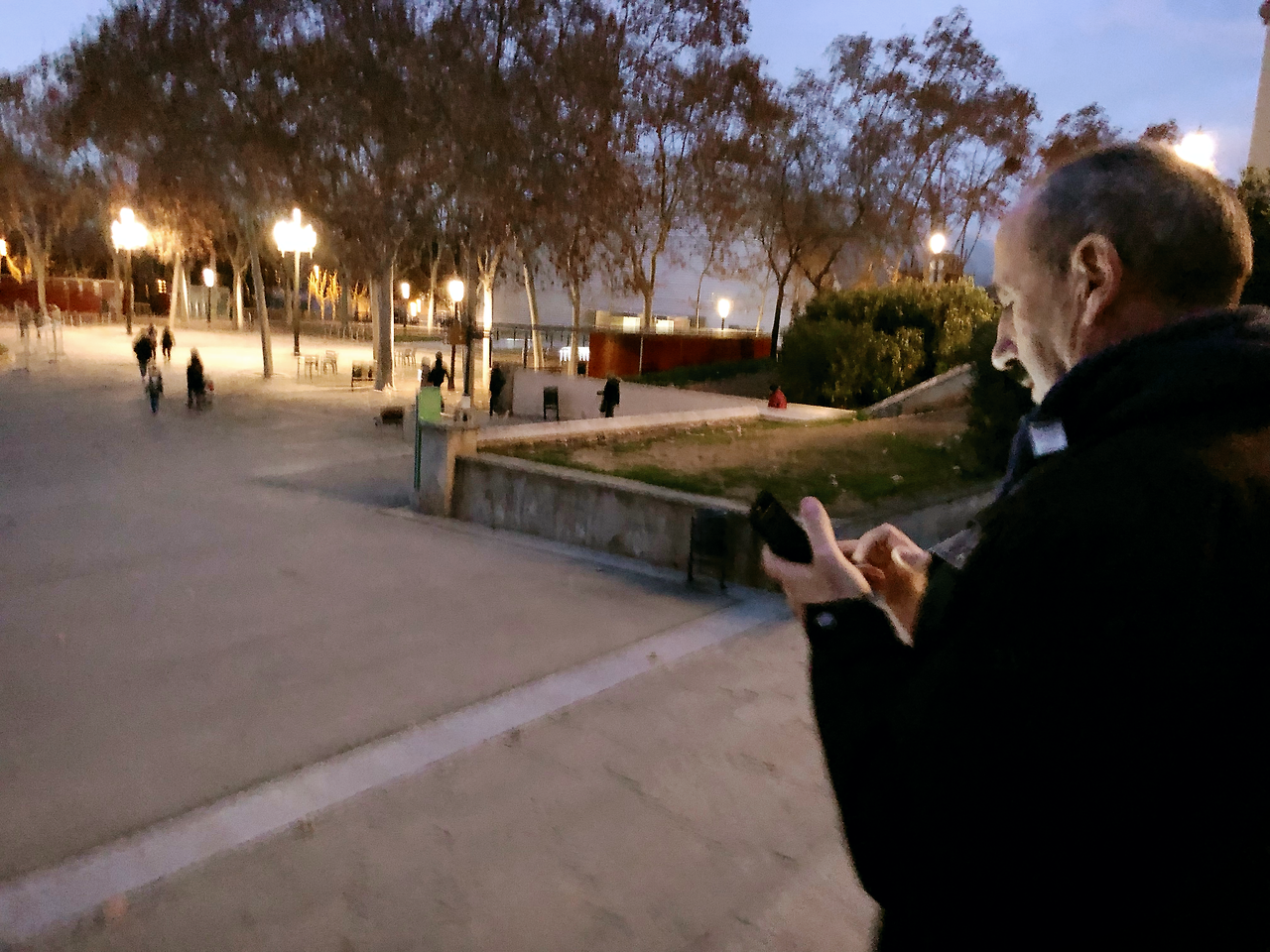 나는 영어로 말하고 할아버지는 스페인어로 말했다. 얼추 알아듣겠는 단어들을 통해 서로의 말을 이해했다. 이제 7시가 다되어 가니 방에서 짐을 싸고 다시 나와 마지막으로 스페인 거리를 걷다가 정리하고 자야겠다는 생각으로 할아버지와의 대화는 마치고 내 시간을 보내고 싶었다. 대화를 종료하고 갈 길을 가기 위해 이제 Metro로 가야겠다 어디로 가야 하냐고 물었다. 할아버지는 뭐라 뭐라 하면서 지하철을 향해 같이 내려가려는 행동을 보였다. 그래 메트로까지 같이 가는 거 어렵지 않지. 할아버지는 내려가는 동안 몬주익 분수 사진을 핸드폰으로 찾아 계속 보여주면서 여기는 6-8월에 와서 분수를 꼭 봐야겠다, 이렇게 추운데 왜 왔냐, 분수가 정말 아름답다고 반복해서 말했다. 그리고 내려가는 동안 틈틈이 내게 핸드폰을 가져가 사진도 찍어주었다.