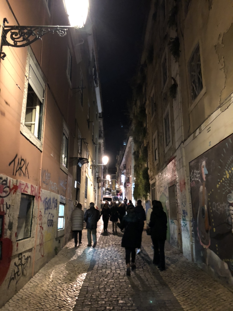 그곳은 톤 다운된 여러 색깔들로 칠해진, 위로 갈수록 점점 경사진 동네였다. 날이 어두워지면 파두 레스토랑과 술집들에는 조명이 켜지고 각국의 억양으로 소란해진다. 인기 있는 펍들은 이른 저녁에도 발 디딜 틈 없이 꽉 찬다. 얼핏 들여다보니 머리색도 복장도 다양하고 알아들을 수 없는 다양한 언어와 음악이 흘러나왔다. 사람들은 자유롭게 빈자리에 뒤섞여 앉아 시간마다 진행되는 파두를 감상한다.