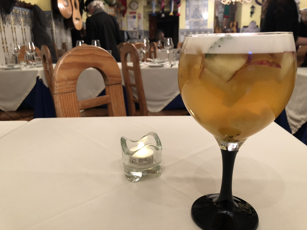 채도가 높은 토마토 레드색 립스틱을 예쁘게 칠해 인상적이었던 그 여성은 억지로 붙잡는 식의 호객이 아니었고, 상냥하며 인상이 좋았다. 배가 고프지 않았기에 음료만 마셔도 파두를 감상할 수 있다는 말에 끌려 들어가 보기로 했다. 아직 늦은 밤이 아니라 거의 빈자리였다. 적당한 곳에 자리 잡고 화이트 샹그리아를 하나 시켰다.