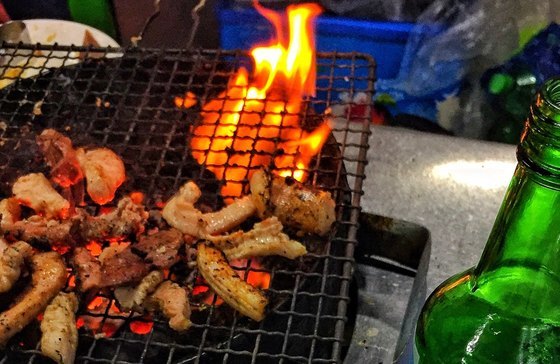 부산에서 술 깨나 먹는다는 사람은 눈치 챘을 겁니다. 이곳은 남포동 자갈치시장 근처에 있는 양곱창 골목의 백화양곱창입니다. 주인이 다른 열두 개 곱창집이 한 데 모여 손님을 받습니다. 메뉴는 양념과 소금 양곱창 둘뿐. 1인분(300g)에 2만5000원, 가격은 다 같습니다. 집집이 단골이 있기도 하지만, 평일에도 워낙 붐벼 되는 대로 앉아야 할 때가 더 많습니다. 입구까지 차오른 연기를 오래된 선풍기로 날릴 뿐이라, 여름이면 찜통인데도 문전성시를 이룹니다. 그러다 보니 회식을 온 아버지가 우연히 마주친 딸의 술값을 계산해주는 일도 있더군요.