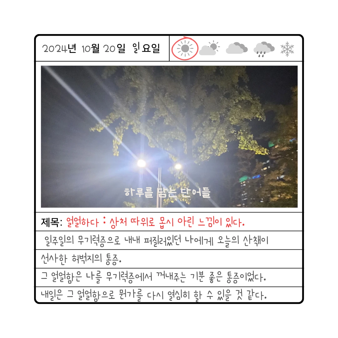 내일은 이 얼얼함을 안고 뭔가를 다시 열심히 해낼 수 있을 것 같다.
