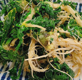 지난주 뒷 산은 냉이가 한창이라 소쿠리 가득 냉이를 캐왔다. 뿌리가 은근히 깊어 어렵게 어렵게 캐온 냉이를 흙탕물이 나오지 않을 때까지 씻고, 뿌리 사이사이에 남아있는 흙을 칼로 하나하나 긁어주고, 티겁지*를 하나하나 골라내야 손질이 끝난다. 어떻게 먹어야 잘 먹었다고 소문이 날까 궁리하며 냉이 볶음, 냉이 된장국, 냉이밥으로 몇 끼를 먹었더니 어느새 냉이 소쿠리는 텅 비어있었다. (*티겁지 : 티끌의 방언, 우리 엄마는 늘 티겁지라고 하신다.) 나물이라는 게 어찌나 귀한 음식인지, 한 소쿠리 가득 캐와도 손질하고 다듬어 밥 상에 몇 번 올리면 이렇게 금세 동이 나곤 한다.