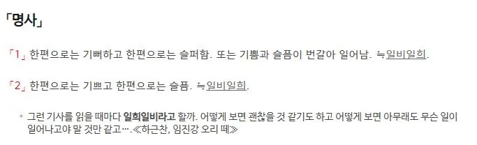 그 문장을 보며 문득, '일희일비'가 정확히 무슨 의미인지 궁금하여 찾아보았다.