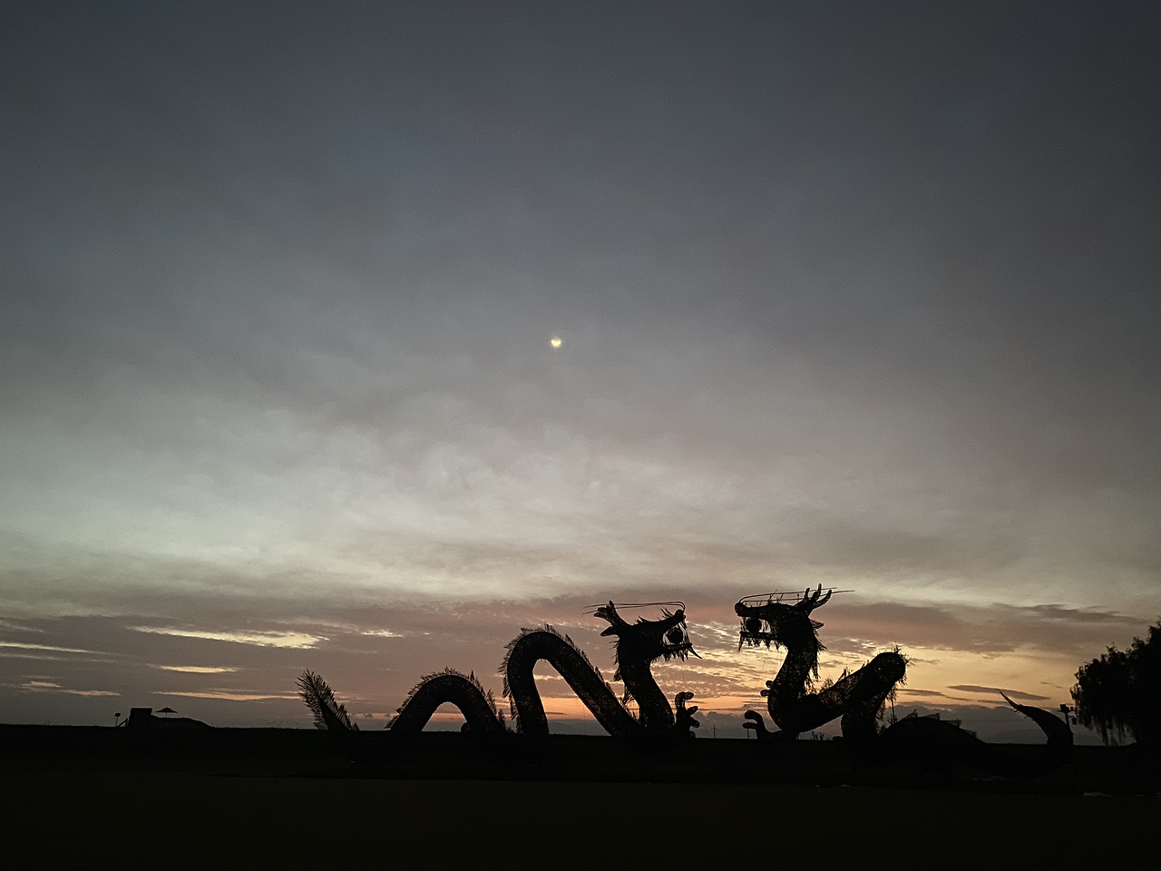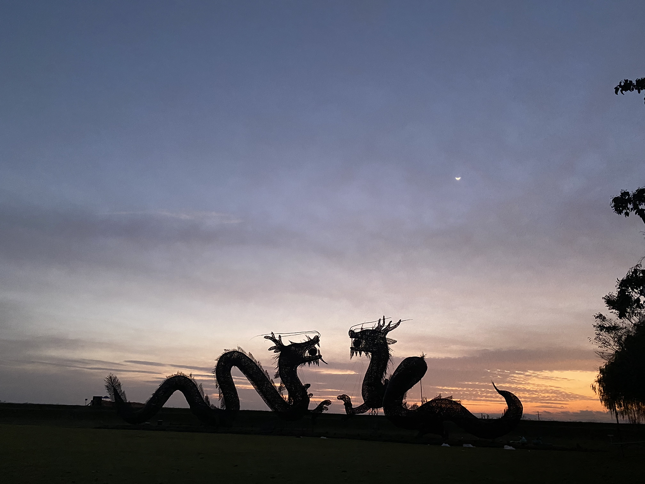 잔디밭 너머로 있는 용 두마리를 보며 해가 떠오르기도 전부터 가슴이 두근두근하다
