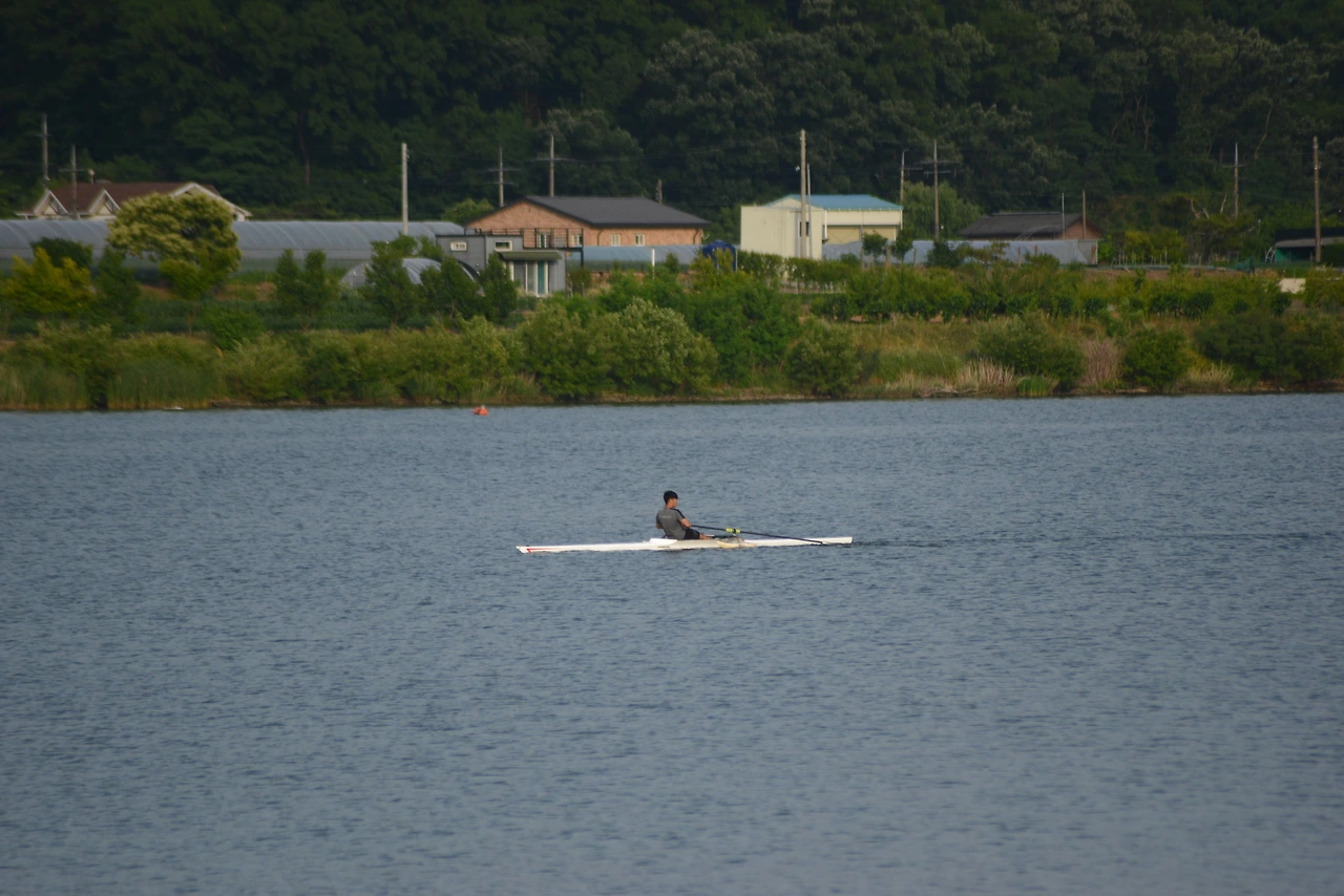 물 위에서 조정을 타는 사람들도 있고