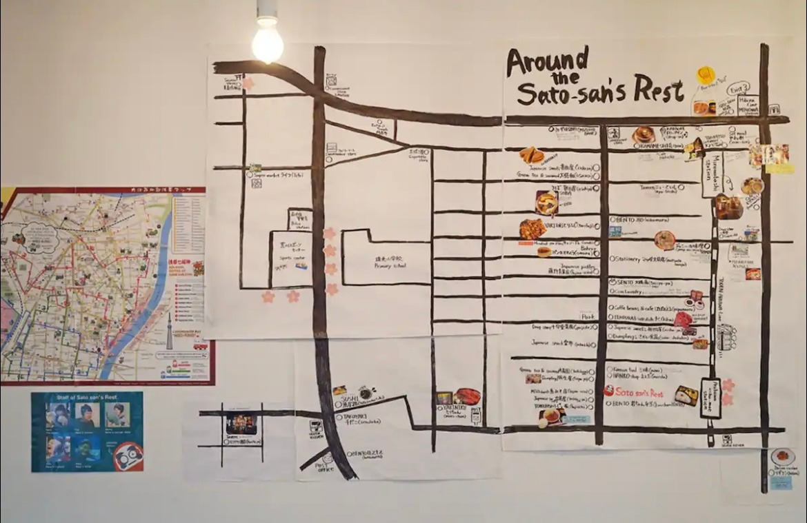 밤 8시가 넘어 숙소에 들어왔음에도 불구하고 주인장 유타는 피곤한 기색 없이 우리를 웃는 얼굴로 맞아주며, 체크인을 도와준다. 프론트 데스크 뒤편에는 미노와 맛집 지도가 그려져 있었는데, 나는 그 지도를 손가락으로 가리키며 유타에게 밤늦게 저녁 식사 할 수 있는 괜찮은 식당을 추천해 달라고 부탁했다. 라면 집 몇 군데와 이자카야를 추천받고, 음식물이 모두 소화가 되어 텅 빈 배를 싸매고 헐레벌떡 자리를 나섰다.