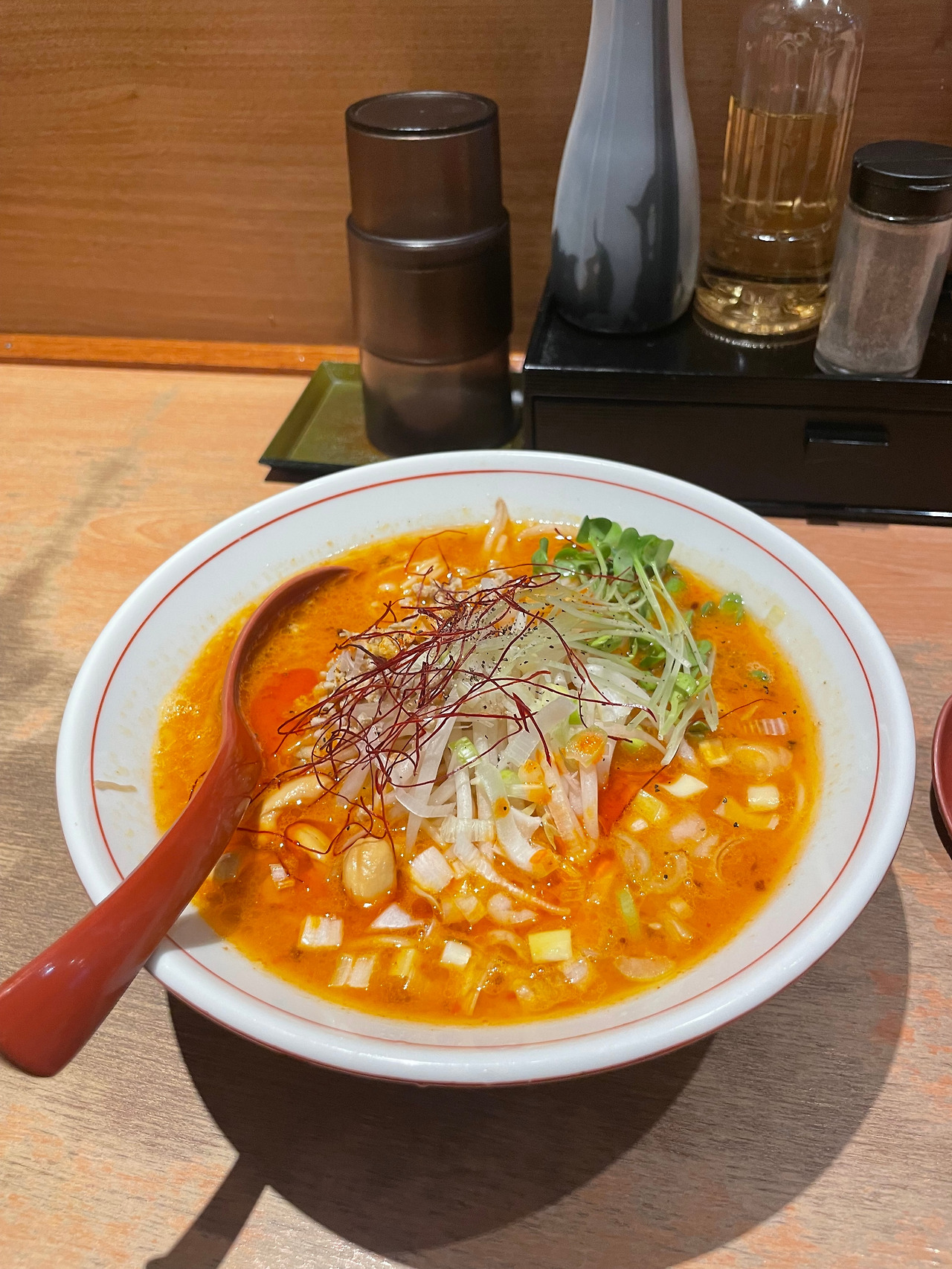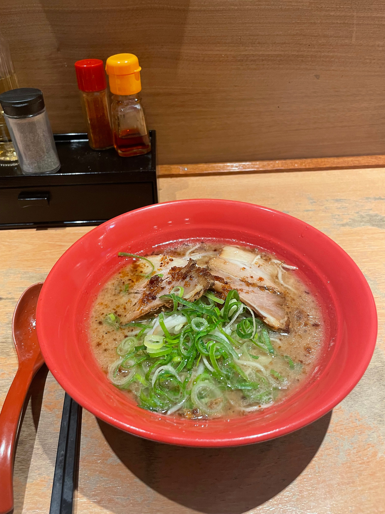 키오스크의 언어는 일본어로만 설정되어 있었는데, 이 때문에 구글 지도에서 메뉴에 대한 정보를 확인한 뒤 먹고 싶은 메뉴를 그림 찾기 하듯 골라 주문해야만 했다. 나는 돼지 뼈 라면을 친구는 매운 라면을 선택했다.