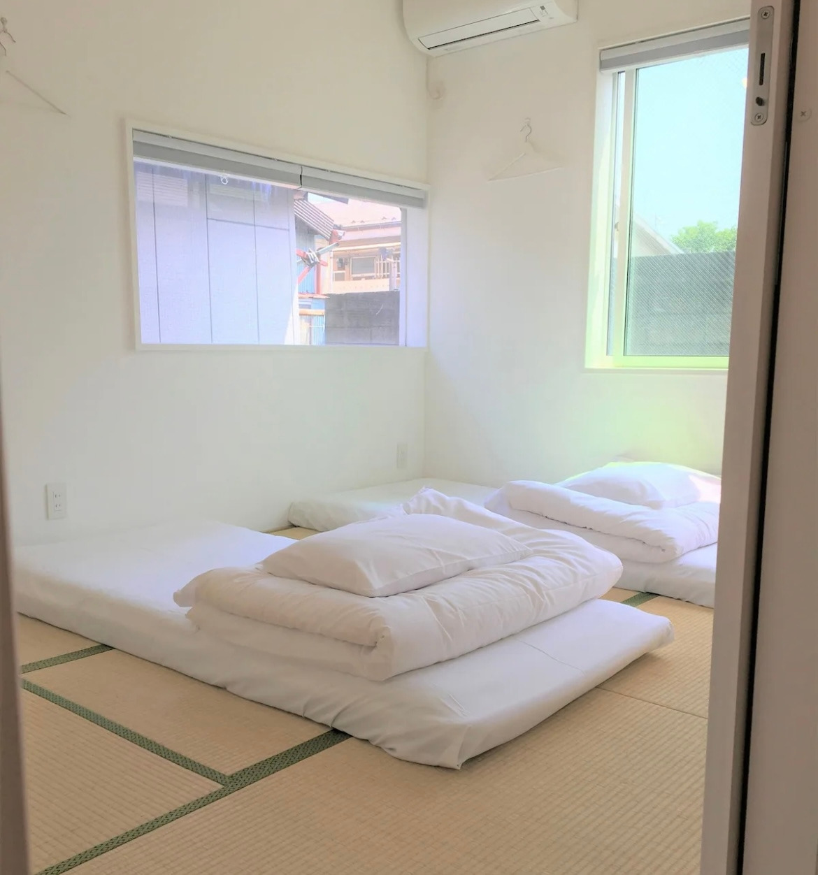3박 4일 동안 머무를 숙소는 미노와 시장 내에 위치한 산토 산스 레스트. 여행을 좋아하는 화목한 가족(아빠 유타, 엄마 나나, 딸 안나)이 머무르면서 알차게 공간을 꾸려 나가고 있다. 일본 특유의 다다미로 구성된 방은 3평 남짓으로 아담하지만, 숙소의 크기를 중요시하지 않았던 우리에게는 좁은 방이 여행을 불편하게 하는 스트레스 요인으로 다가오지 않았다. 1층 로비에는 고타츠 테이블이 있어 편의점에서 안주거리를 사들고 맥주 한잔 하며 여행에 쌓인 피로와 추억을 풀기 최적의 장소였다.