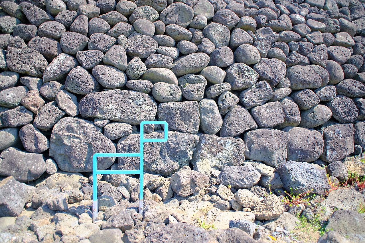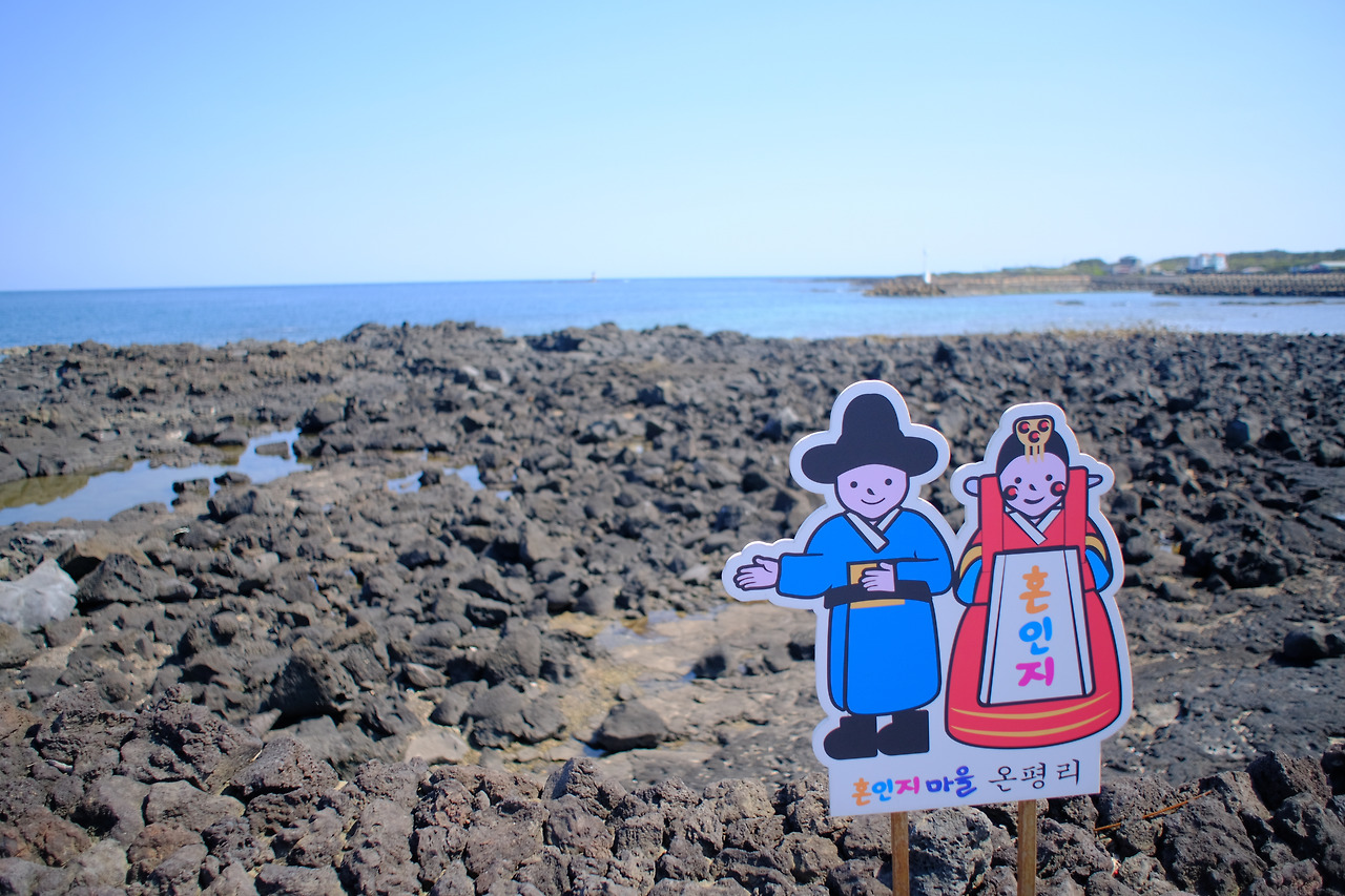 상동교차로를 지나 마을을 가로질러 해안 도로로 나오면 익숙한 간세와 검은 성벽이 나온다. 온평 환해장성이다.