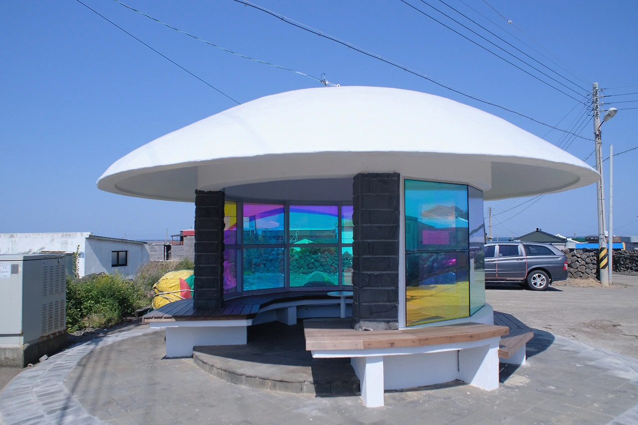 오봉리 경로당을 지나 파평윤씨공원 옆 샛길을 따라 걷는다. 다시 해안로를 만나 걷다 보면 만날 수 있는 방사탑과 카페.