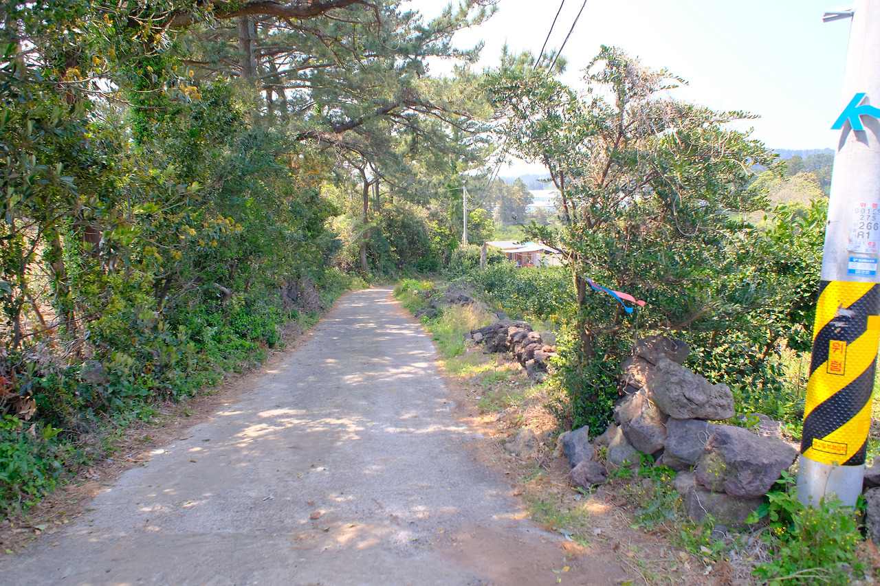 평탄한 해안 도로를 걷다 보니 어제 묵었던 제주바다마루펜션으로 가는 길이 나왔다. 10:51분.