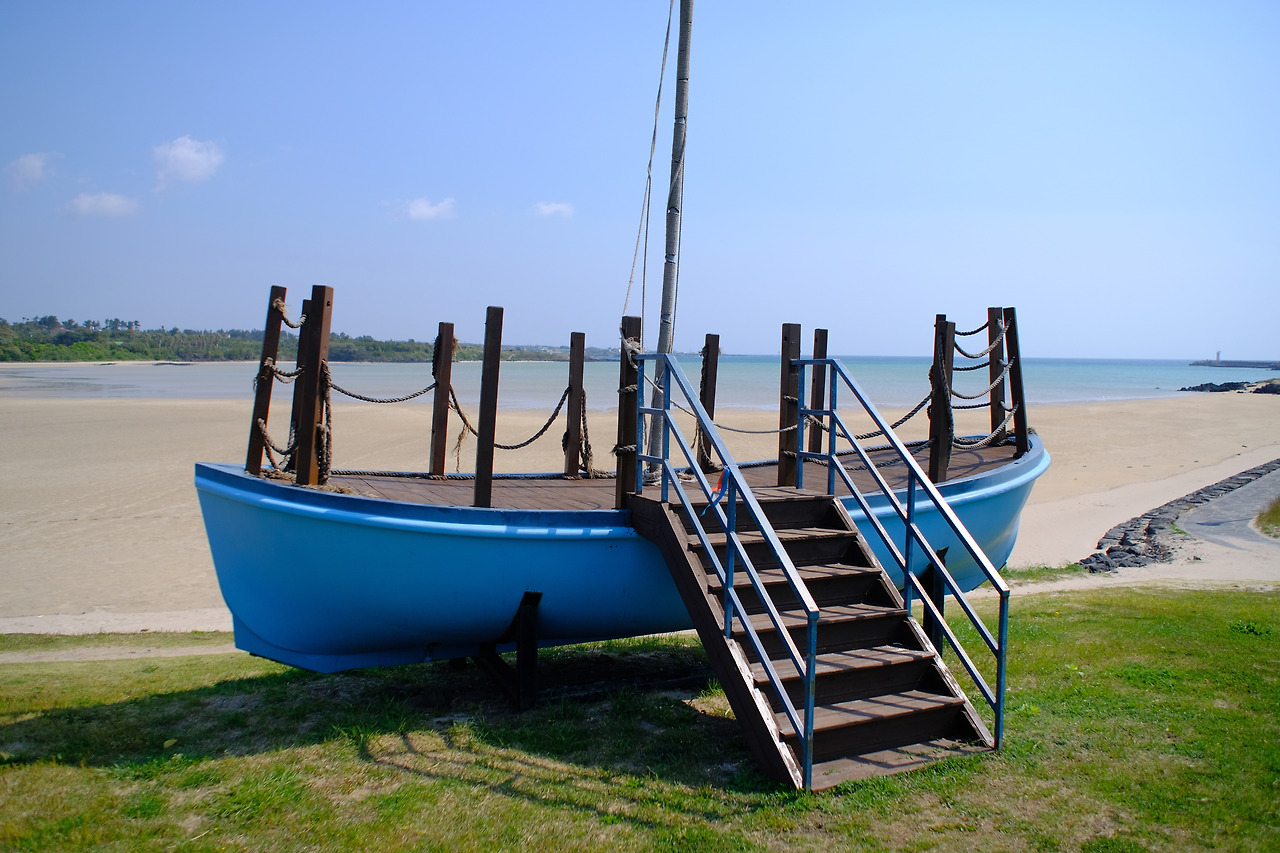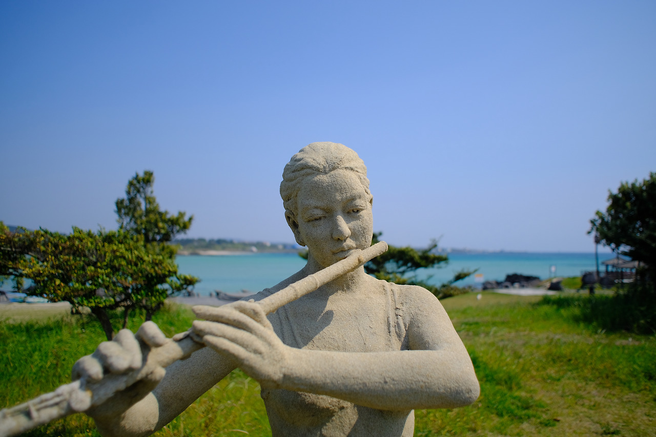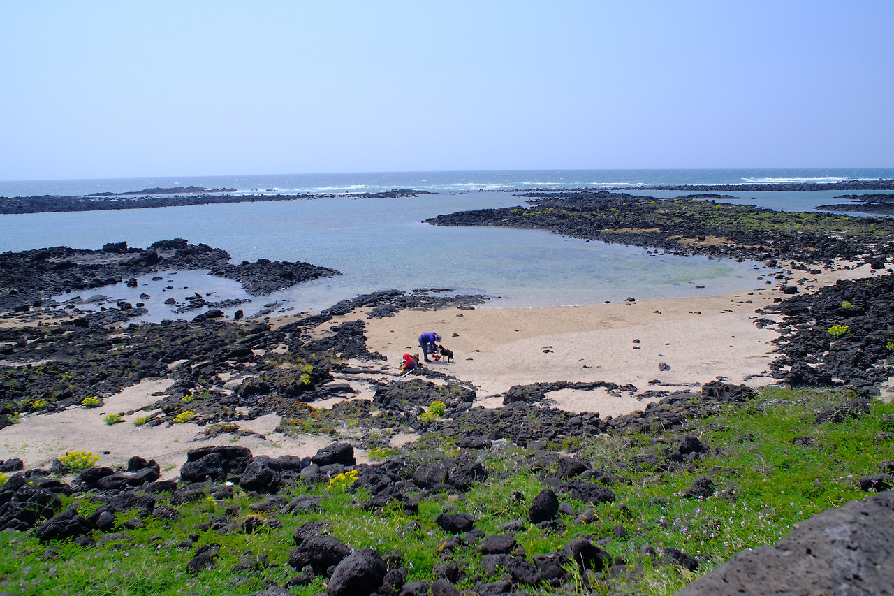 저 멀리 깨끗해 보이는 바다와 부드러운 하얀 모래가 아름다웠던 표선해수욕장. 백사장이 넓어 바다까지 가보지는 않았다. 표선해수욕장은 원형의 해수욕장으로 만조 시 수심이 1m 이내로 조용한 호수와 같은 모습이 된다고 한다. 낮은 수심은 백사장과 에메랄드빛 바다가 만나 경관이 아름답고 아이들이 물놀이하기 좋은 해수욕장으로 유명하다.