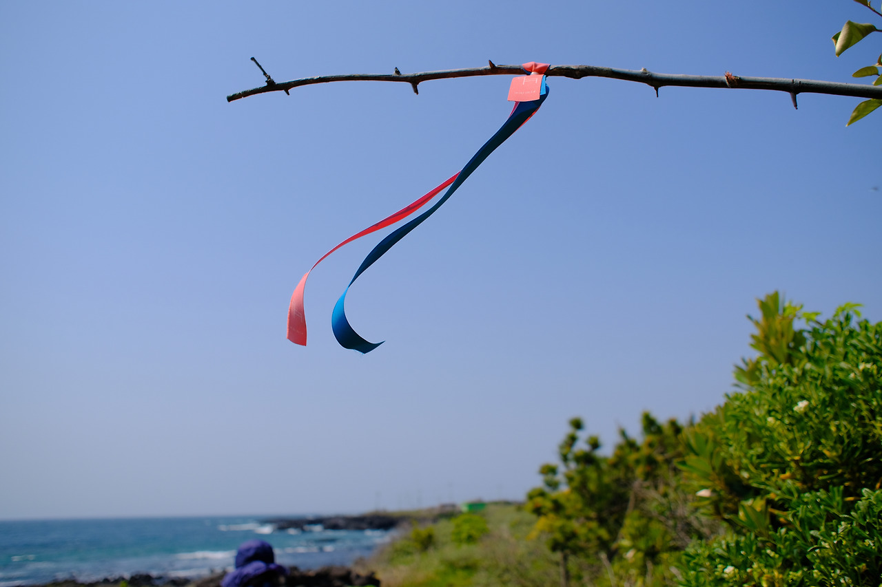 해녀작업장을 지나 작은 숲길에 들어서니 올레꾼 몇 분이 나무그늘 아래서 휴식을 하고 계셨다. 오늘은 다른 날에 비해 올레꾼이 길에서 제법 보인다. 4코스가 이렇게 인기 있는 코스였나? 하는 생각이 문득 든다. 숲길을 잠깐 빠져나오면 시원한 바다 풍경이 펄 쳐진다.