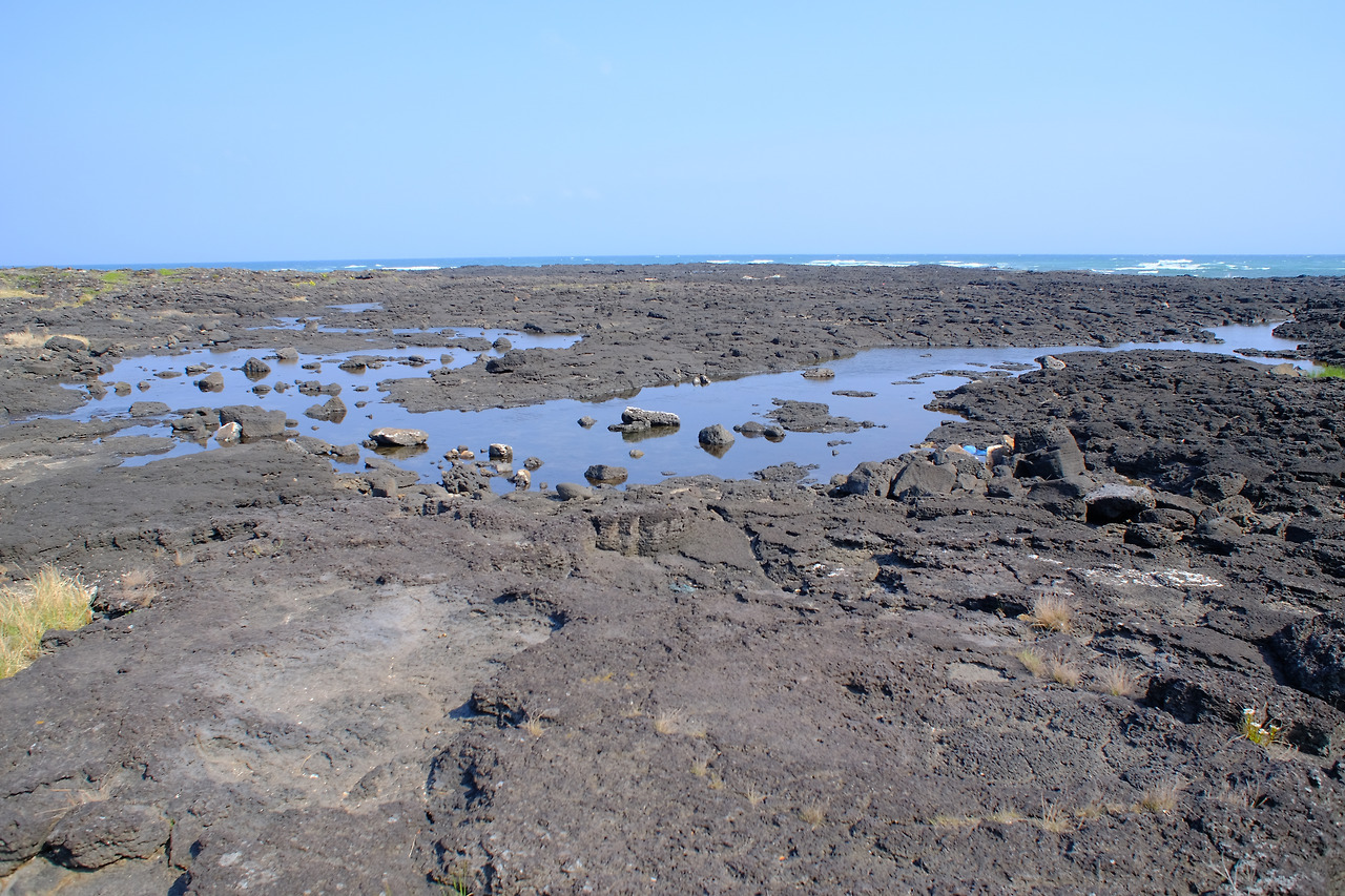 갯늪은 표선 서남쪽 해안 갯가에 있는 습지다. 작은 배를 띄울 정도의 크기로 초보 해녀의 학습장으로 활용된다고 한다. '테우' 란 여럿의 통나무를 엮어만든 뗏목배라는 뜻이다. 시작한 지 한 시간가량 걸어 3km 지점에 도착했다.