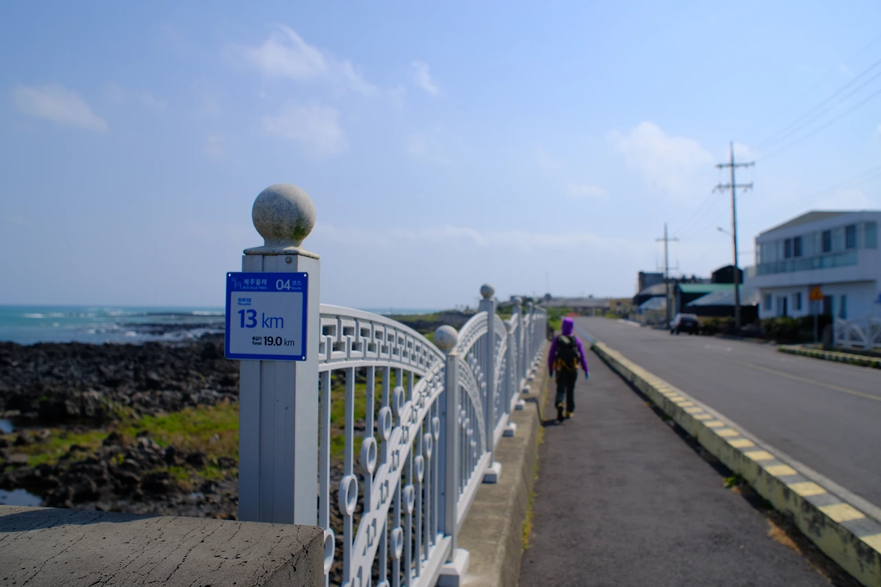 제주바다마루펜션에서 표선백사로까지 나오는데까지 제법 시간이 걸린다. 콘크리트 외길이었는데 전날 밤길에는 분위기가 무서웠다. 길을 나와 그대로 큰길까지 나온다. 정확하진 않지만 아마 마스크 구매를 하기 위해 큰길까지 나왔던 거 같다. 해비치해변으로 내려와 전날 중단했던 롯데리아 근방까지 간다. 10:00분. 3코스를 이어간다.