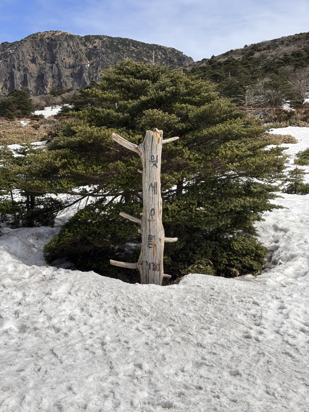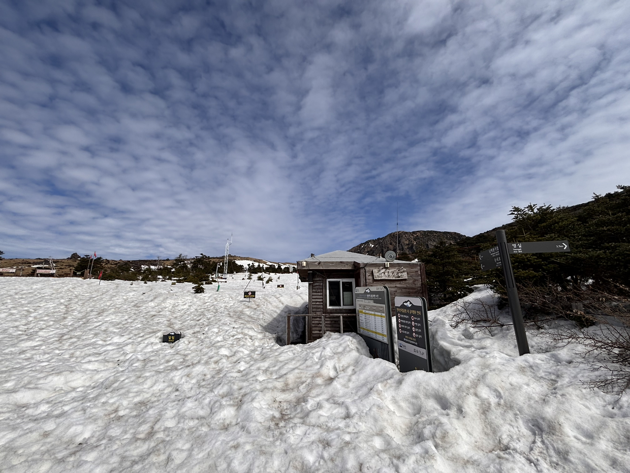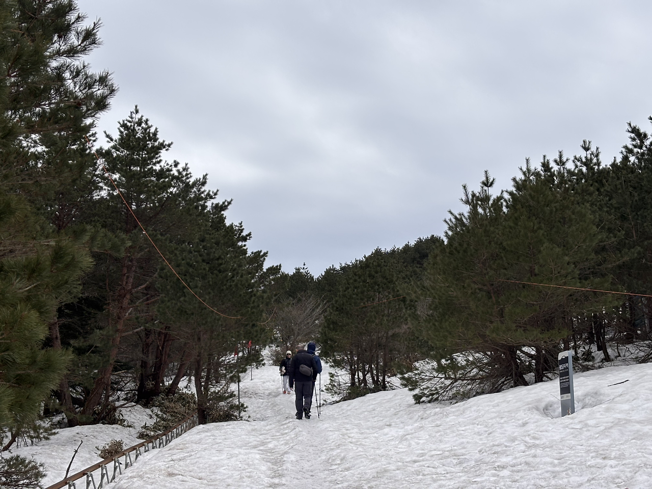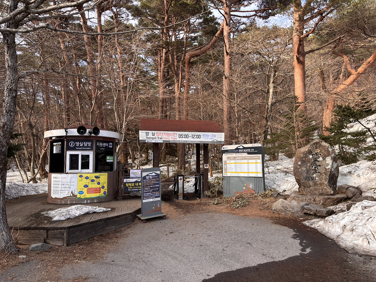 입구에선 윗세오름에 눈이 쌓여 아이젠이 없으면 통과시켜주지 않는다는 안내를 받았다. 실제로 준비가 되어 있지 않아 그냥 돌아가는 사람들도 보였다. 다행히 나는 준비를 했지만 사람들의 배낭을 일일이 확인은 하지 않았다. 아이젠이 없었어도 입산은 할 수 있었을 테지만 위험과 맞바꾸는 행위다.