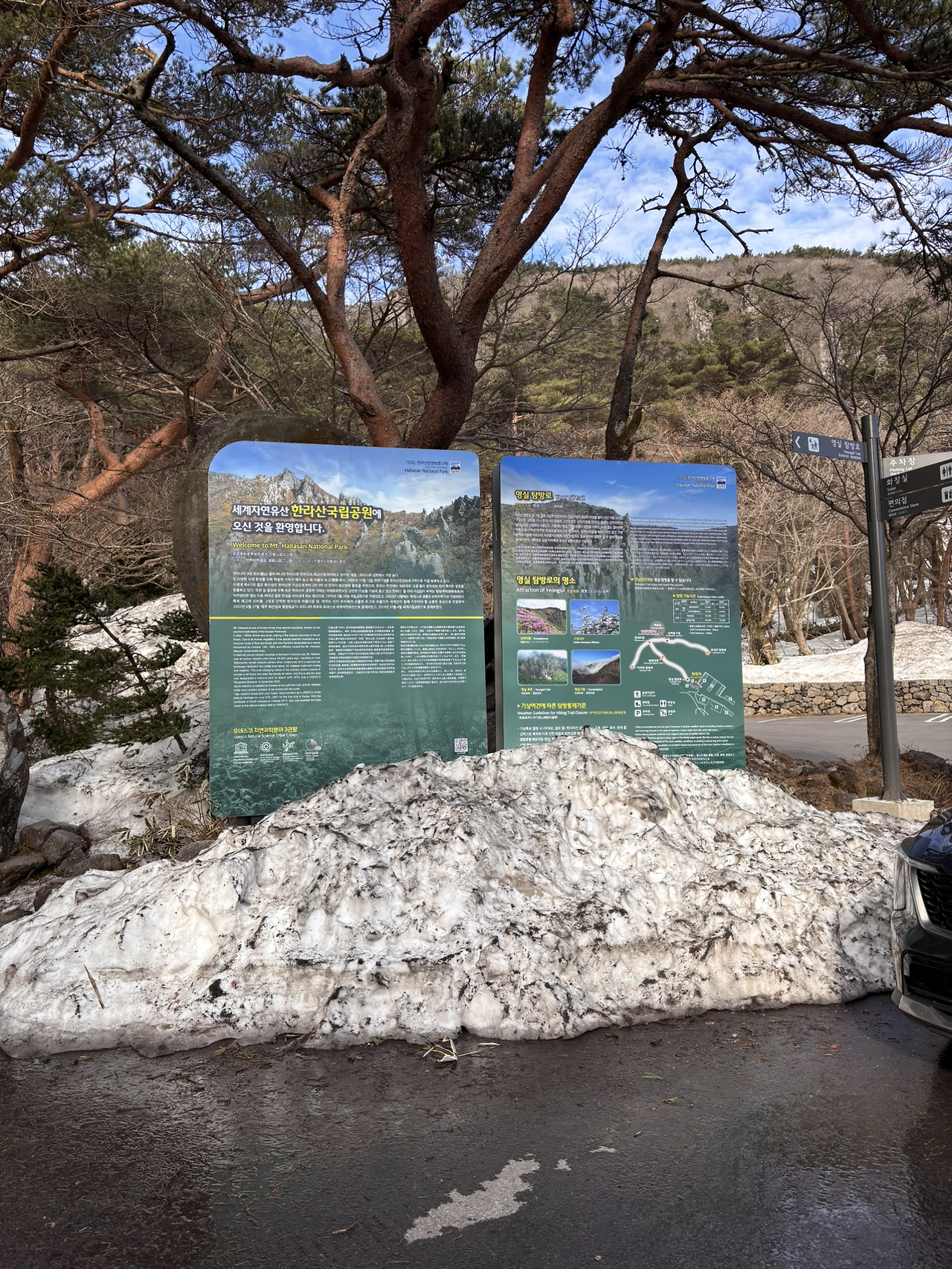 10시 45분, 목적지에 도착했다. 주차장 근처 화장실을 이용한 뒤, 오늘의 등반 계획을 마음속으로 다시 한번 정리했다. 어리목 탐방로 입구에서 출발해 윗세오름 대피소를 거쳐 영실 탐방로로 내려가는 코스.