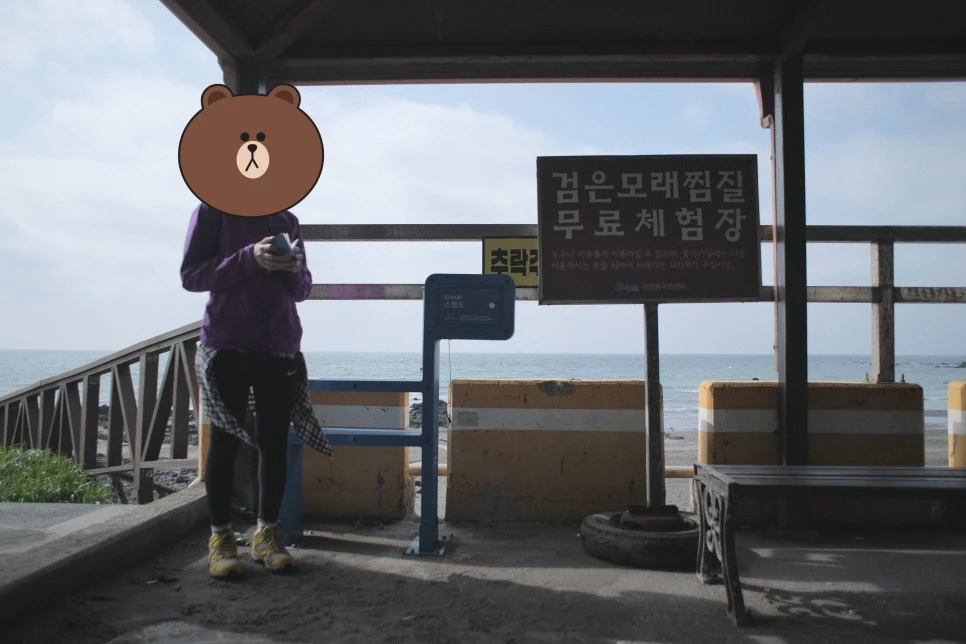 16:00분. 삼양해수욕장에서 중간 스탬프를 찍는다. 걸린 시간은 4시간 25분. 10.5km 부근으로 꽤 여유 있게 걸었다.