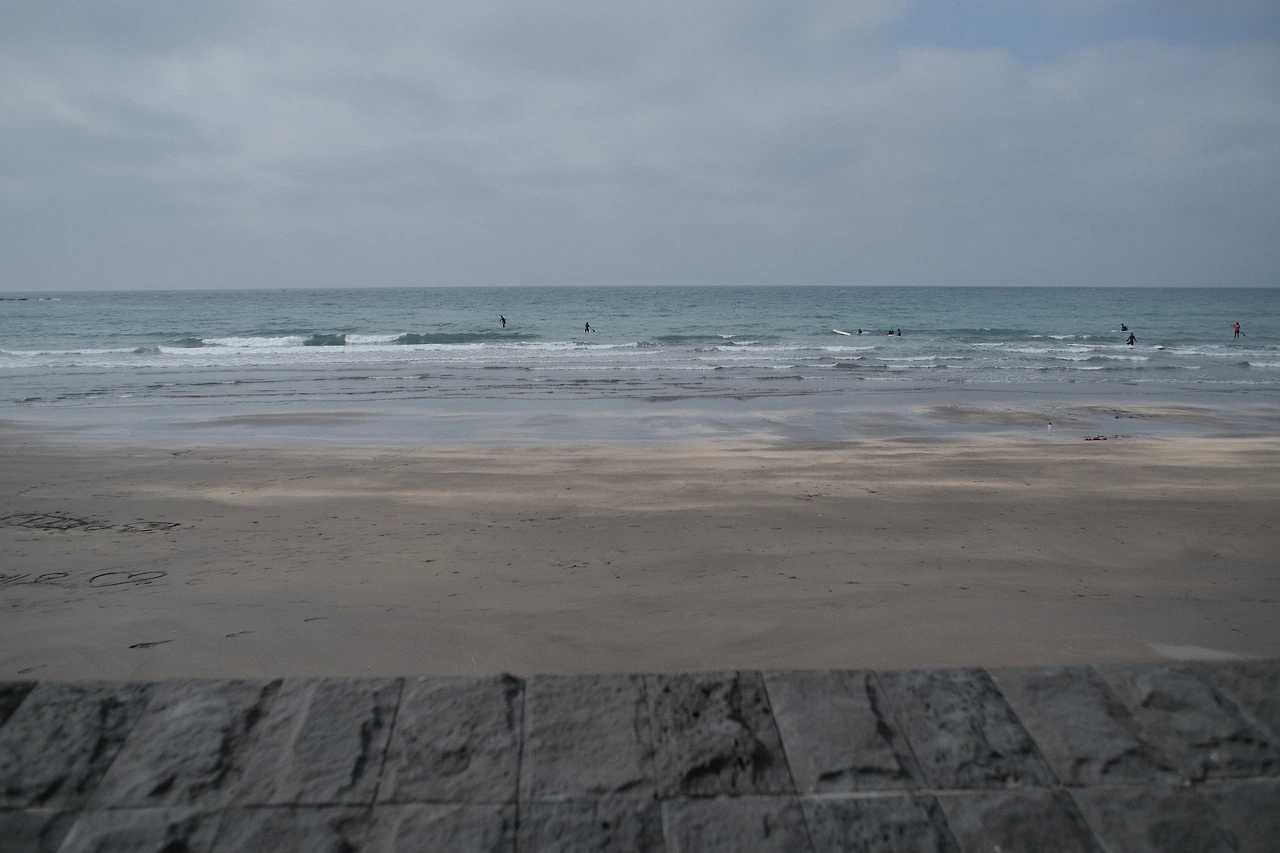 해수욕장에는 저멀리 여유롭게 파도를 타고 있는 서퍼들이 보였고, 햇볕이 따뜻한 산책로 위엔 한가로이 일광욕을 즐기는 고양이도 눈에 띄었다. 검은모래가 아름다운 해수욕장이라고 하니 괜스레 모래의 색깔도 확인해보며 천천히 해변가를 벗어나 마을로 들어선다.