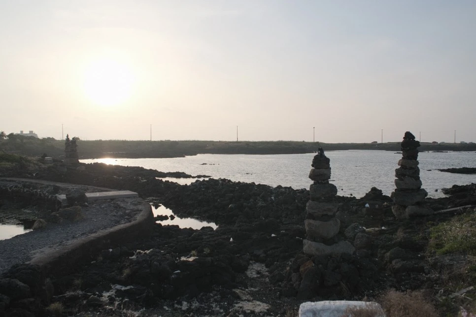 정성껏 쌓아 올려진 돌탑과 새, 그리고 지는 해를 바라보며 어느덧 17km 지점까지 이동했다. 시각은 18:27분. 대략 30~40분 정도 걷는다면 종점인 '조천만세동산'에 도착할 것이라는 계산을 하며 걷다 보니 연북정을 지나 조천항에 도착했다. 연북정은 사실 모르고 그냥 지나친 수준이어서 제대로 보지도 못했고 찍어둔 사진도 없어 아쉽다.