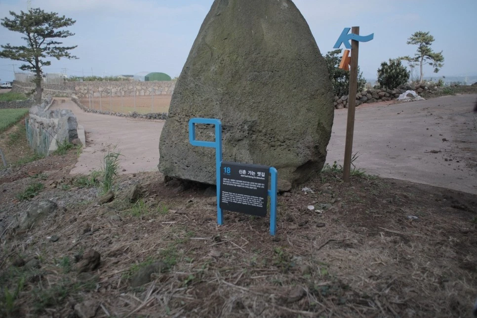 닭모루를 지나 신촌 포구 쪽으로 가다 보면 신촌 선착장 가는 길에 다리(구름다리)가 하나 있다. 지도 앱에선 올레길이라고 되어있지만 리본을 따라간 유작가와 나는 다리를 건너지 않았다. 5년 전 다리를 건넜을 것이라고 짐작되는 사진은 있지만 1장뿐이라 확신은 서지 않는다. 신촌 선착장을 지나 해안 길로 걷다 보면 조천 마을과 신천마을의 경계에 위치한 대섬이 나오는데 제주올레의 설명에 따르면 지질학적으로 매우 중요한 지형이라고 한다.
