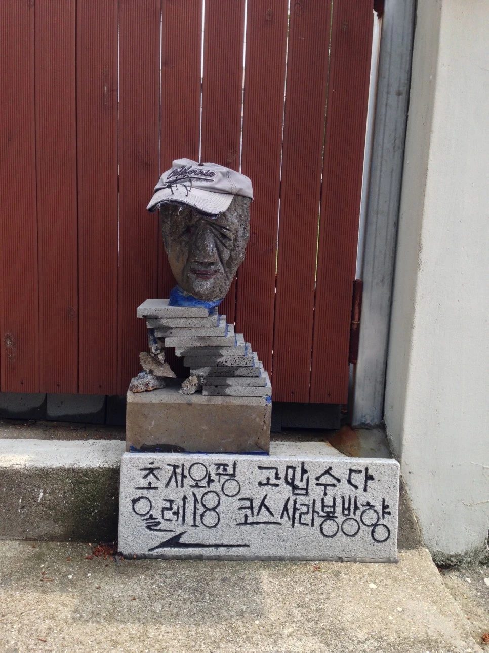 별도봉 산책길은 5년 전 고무 매트에서 야자 매트로 바뀌었고 토요일이라 그런지 산책하는 사람도 제법 눈에 띈다. 별도봉을 내려와 화북천 원도교를 건너 좁은 도로를 따라가면 4·3 유적지 곤을동이 나온다.
