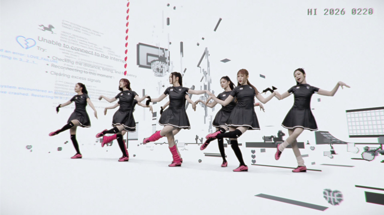 SNS 시대의 관심과 애정을 은유하는 '하트 공장'에 가짜 하트가 범람하며 시스템 에러가 발생한다는 설정은 자연스럽게 키키의 '404 (New Era)'가 겹쳐 보인다. 키키가 '시스템 밖의 자유로운 좌표'를 부르짖었다면, 하츠투하츠의 'RUDE!'는 이 혼돈을 당돌한 고군분투와 귀여운 고양이의 '해프닝'으로 수렴시킨다. MV 세트 안에서 완벽에 가까운 군무를 보여주는 하츠투하츠와 광활한 자연 속을 자유롭게 뛰어다니는 키키의 대비가 5세대 그룹들의 서사를 관전하는 재미이기도 하다.