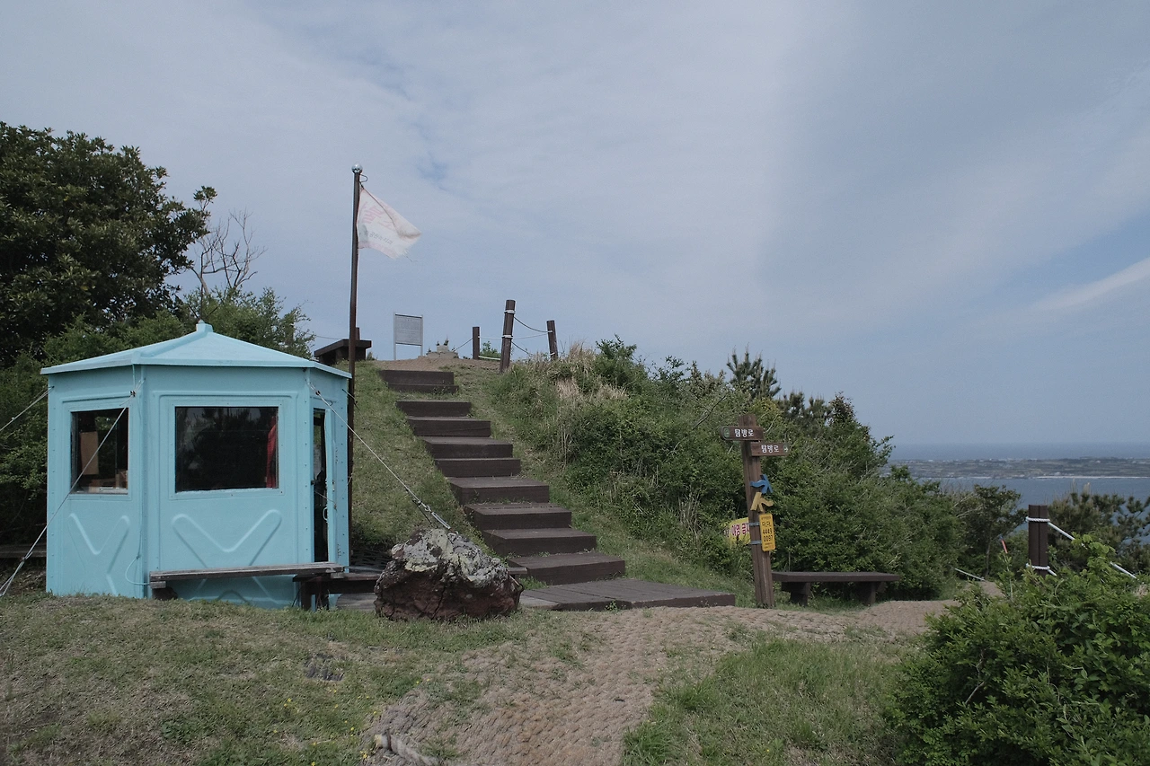 경사가 제법 있는 오름으로 땀이 날 때쯤 산불 경비초소가 나왔다. 초소 옆 계단을 올라가면 지미봉(162.7m)의 정상이다. 초입의 설명처럼 20여 분이면 오른다. 14:27 ~ 14:45 18분 소요. 지미봉은 과거에 횃불을 놓아 마을의 행정, 군사 상황을 알리는 역할을 했다.
