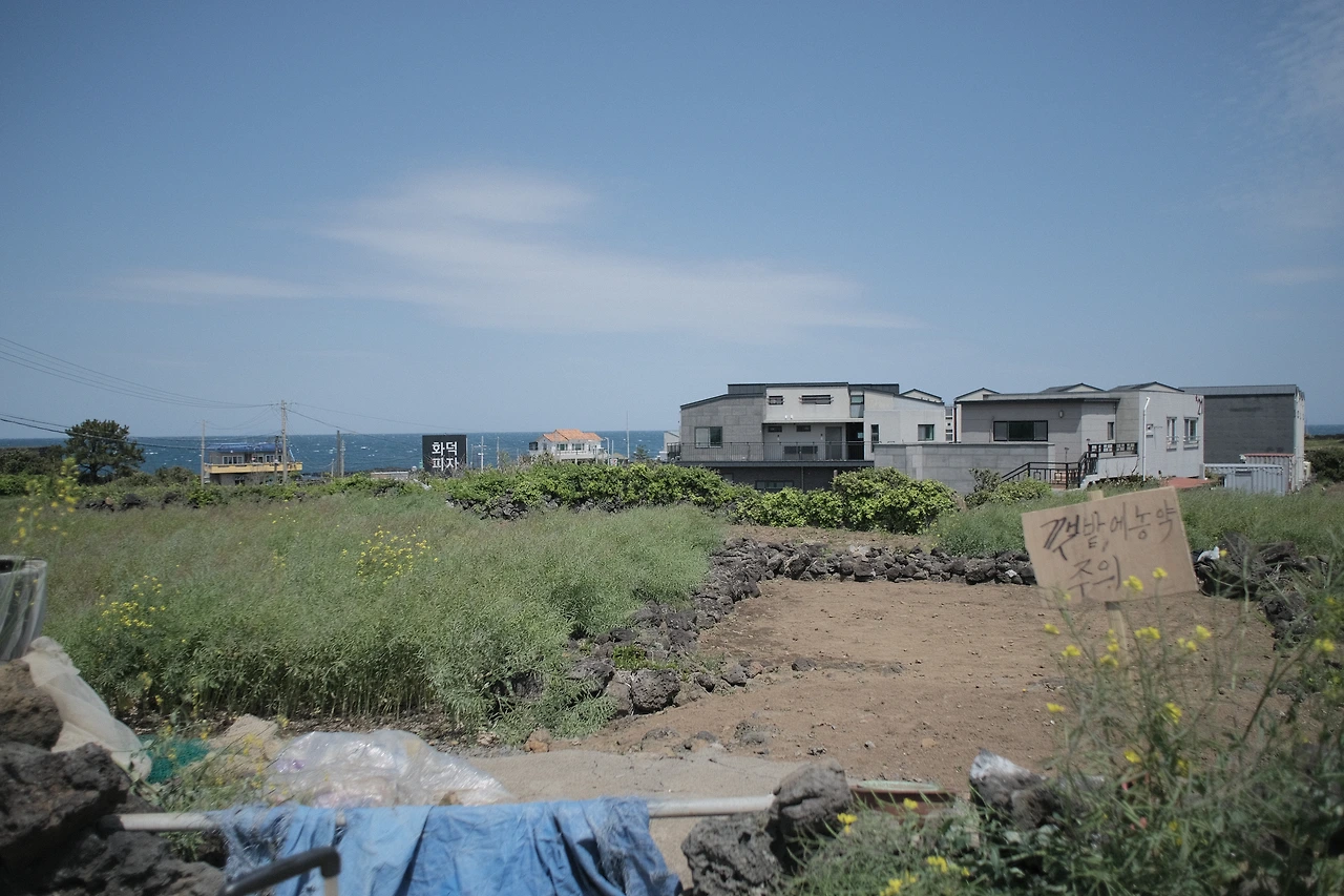 동산을 지나면 하도 운동장이 나온다. 구름이 살짝 있지만 하늘이 맑고 바람도 적당해 왠지 운동을 하고 싶어 지게 만드는 날씨와 환경이다. 내가 사는 곳엔 이런 번듯한 운동장이 없고 제주를 걸으면 의외로 이런 운동장이 많아 부럽다. 운동장을 지나 걷다 보면 숨비소리 길을 만날 수 있고 한동안 길을 따라 걷는다. 숨비소리 길은 해녀박물관 주변에 조성된 4.4km의 도보여행길이다. 면수동 마을회관을 지나 밭으로 향한다.