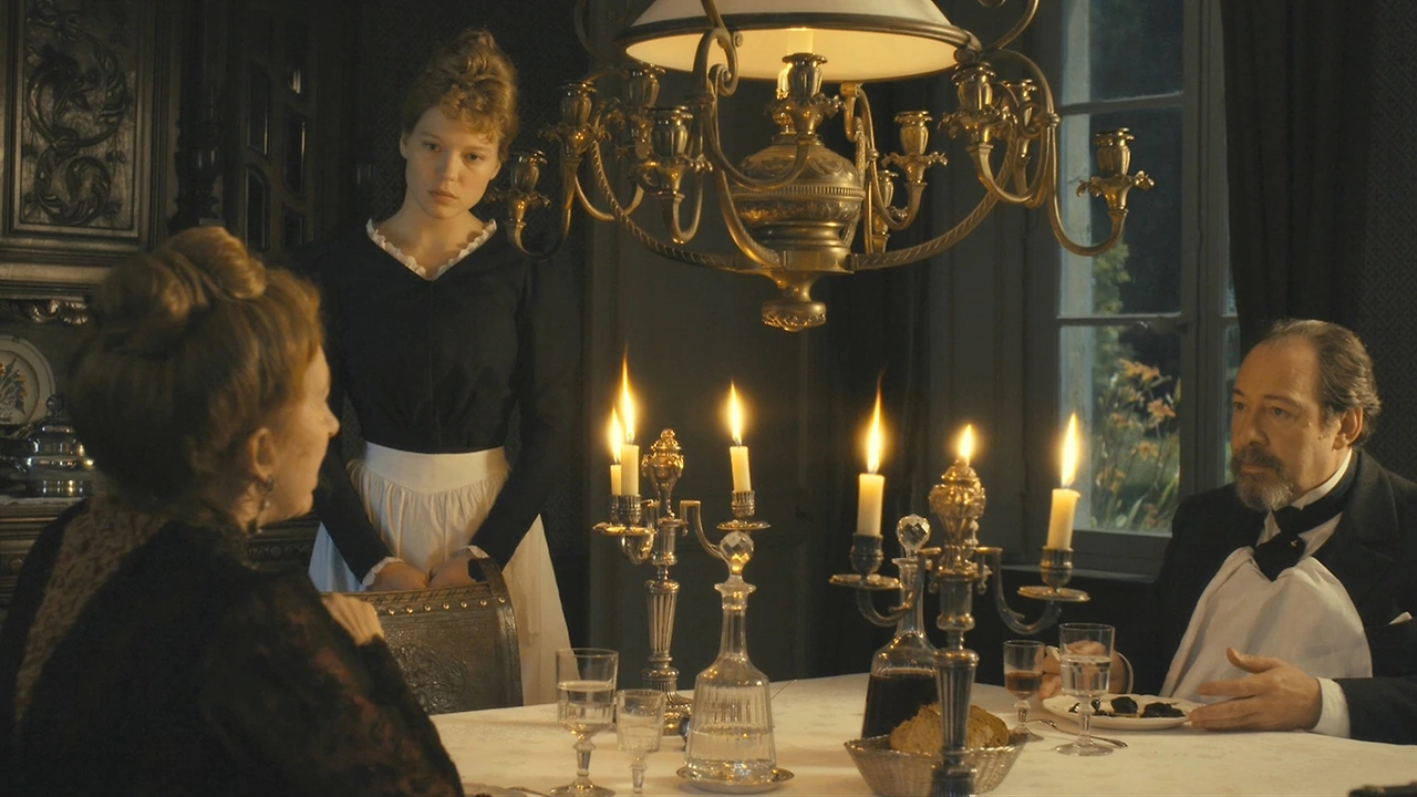 기존 영화들이 보여주는 '하녀'의 이미지를 답습하는 <어느 하녀의 일기>. 어리고 예쁜 하녀와 그녀를 향한 성욕에 물든 부자 주인, 젊고 예쁜 하녀를 질투하는 안방마님까지 신선하지 않은 이미지들이 다르게 느껴지는 건 배우의 힘 덕분이다. 이미 <페어웰, 마이 퀸>에서 브누와 쟉꼬 감독과 호흡을 맞췄던 레아 세이두는 마리 앙투아네트의 시녀 역에 이어 이번에도 그녀만이 보여줄 수 있는 하녀로 거듭났다. 몸은 굽혀도 마음은 굽히지 않는 도도한 태도와 상대를 교묘하게 비꼬는 예리한 언행, 귀족들에게 지지 않는 세련된 패션 감각과 우아한 몸짓의 이 하녀는 그저 순종적인 다른 하녀들과 차원이 다른 마력을 내뿜으며 스크린 밖 관객들까지 유혹한다.