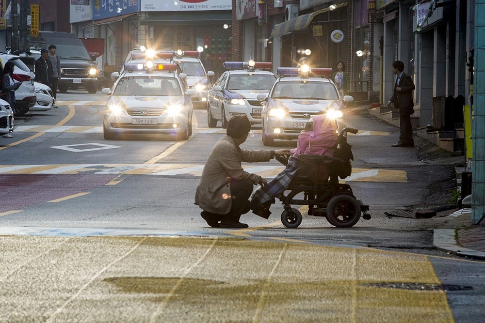 물론 가족의 사랑을 주제로 하고 있지만 영화는 크게 두 줄기로 나누어 이야기를 진행한다. 가족 그리고 로봇. 줄거리는 간단하다. 딸을 잃어버린 아버지가 우연히 발견한 로봇을 이용해 자기 딸을 찾는다는 게 이야기의 핵심이다. 아버지 해관(이성민 분)은 대한민국의 전형적인 아버지 상이다. 딸 유주(채수빈 분)를 사랑하지만 아이가 커갈수록 관계가 서먹해지고 아이에 대해 잘 알지도 못한 그런 아버지가 돼 버린다. 하는 행동과 속 마음이 다른 아버지의 모습은 한국 사회 내에서 많은 미디어들을 통해 재생산되었다. TV 드라마 <응답하라 1988>의 덕선이 아버지가 그랬고 영화에선 <국제시장>(2014)이 그 이미지를 굳히는 데 한 몫했다. 가족을 위해 묵묵히 희생하지만 정작 자식들과의 관계를 서먹한 그런 아버지. 미디어는 그런 아버지의 모습을 위축된 가장으로 그리며 항상 안타까운 시선으로 그들을 바라보았다. 가장으로서 책임감에 비해 면이 서지 않는다는 것이다.