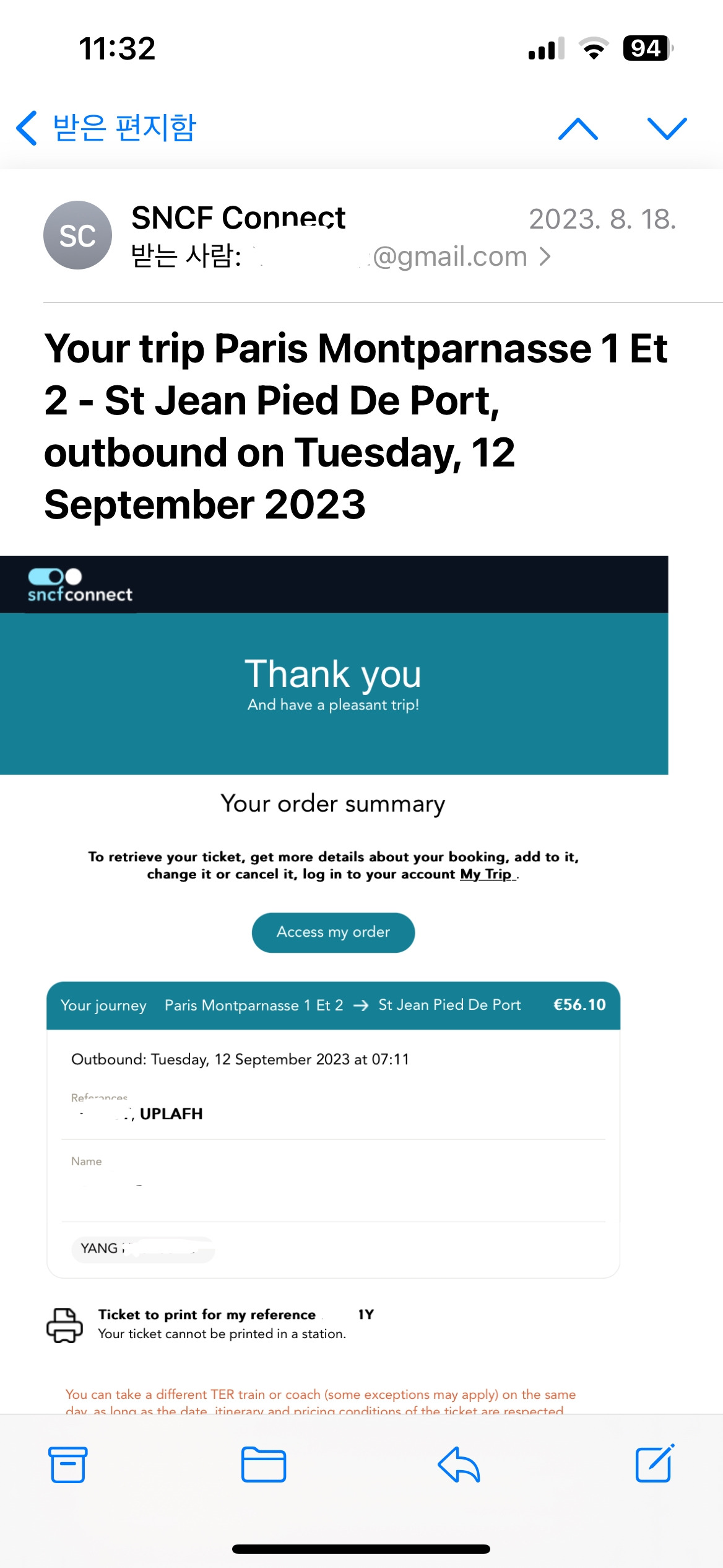 신용카드로 수수료와 비싼 이자를 물지 않아도 되고 비싼 수수료도 없이 통장과 연동된 돈을 각국 화폐로 환전해서 바로 쓸 수 있는 “국제 체크카드”라니 나는 예약을 해본다고 트래블 월렛에 돈을 넣고 환전을 해서 SNCF 기차표를 바로 결제해 보았다.