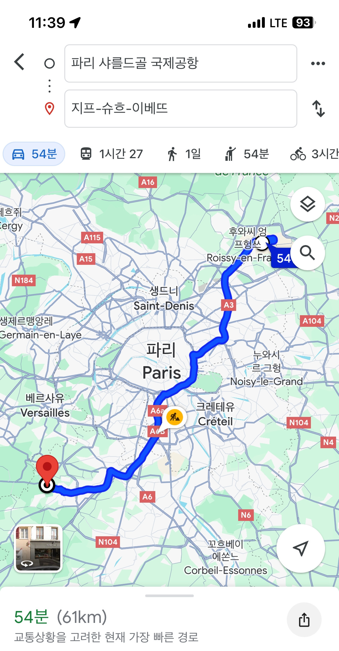 일단 말로 설명을 해줘도, 거리감이 없으니 이해가 가질 않았는데, 고속도로를 타고 파리 시내를 관통해 에펠타워, 파리 생제르망 스타디움을 지나 파리 외곽으로 달려 나갔다.