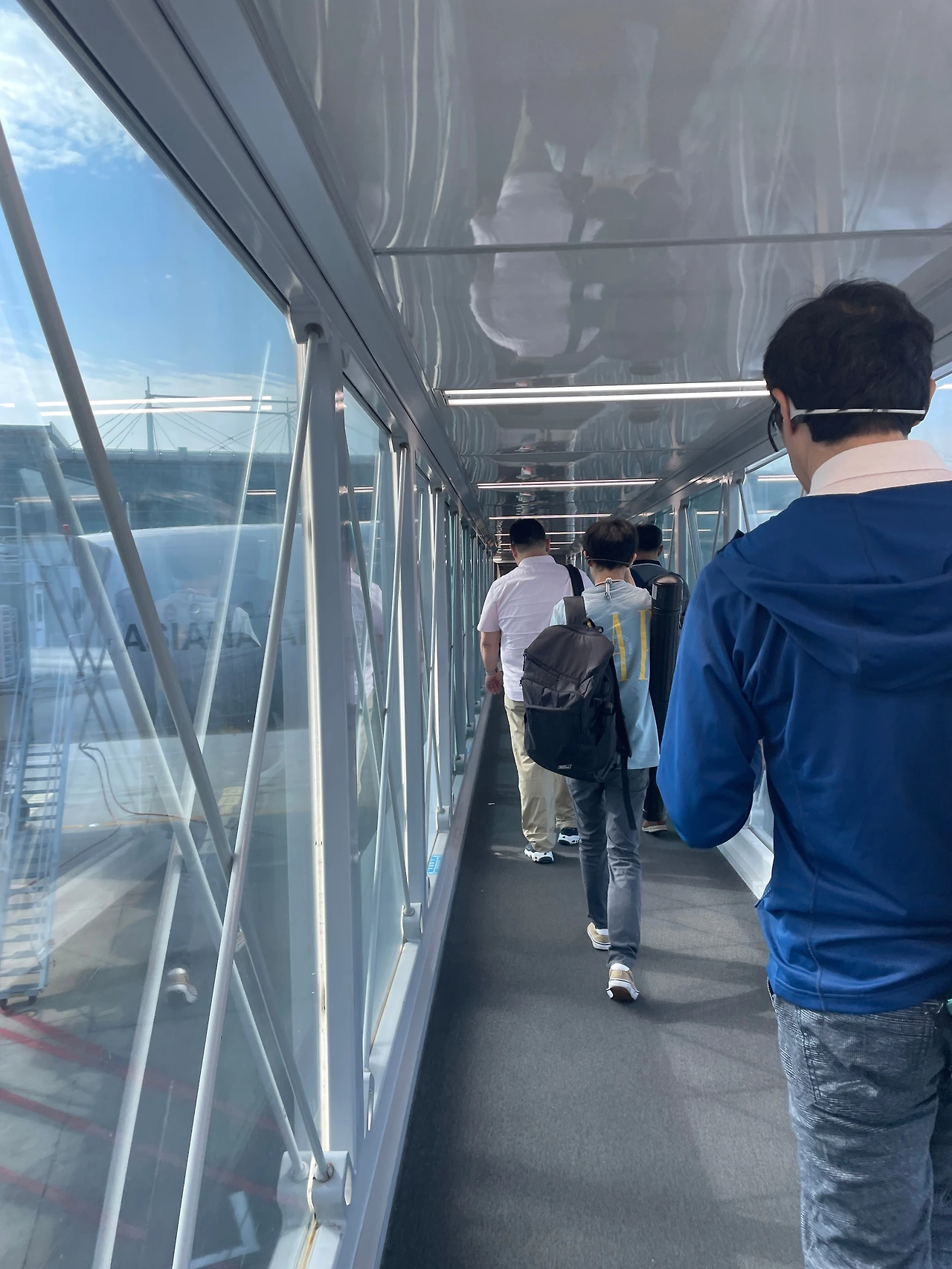 비행기 게이트를 따라 통로로 들어가는데