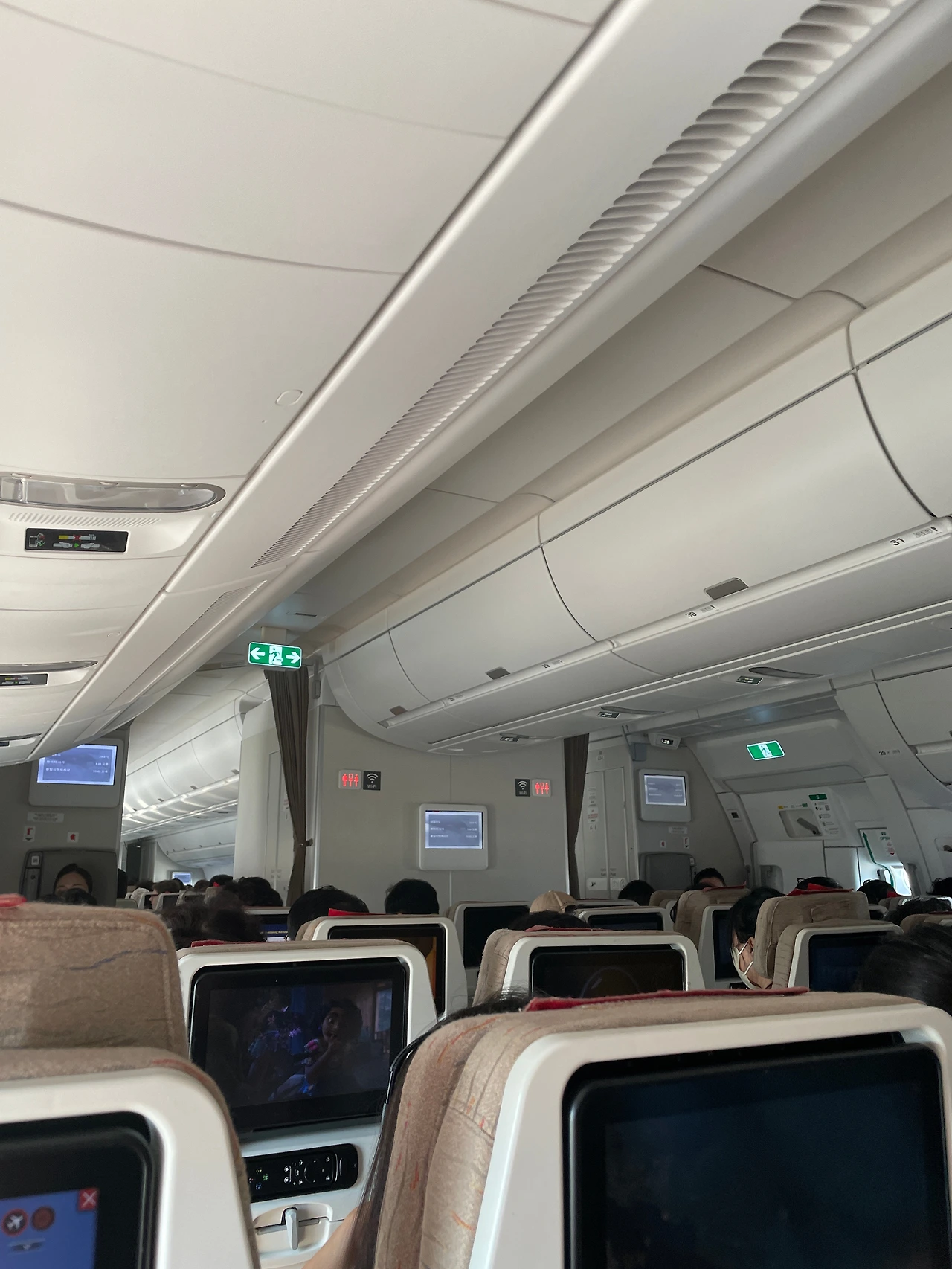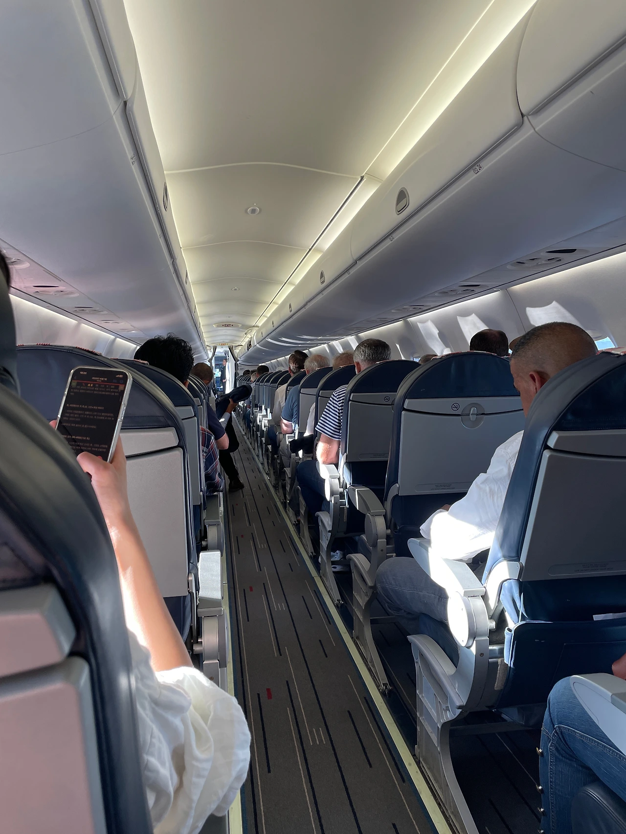 화장실을 4번 정도 갔었는데 다 내가 두 장정을 내쫓고 나는 왔다 갔다 근육을 풀어 줘야 했기 때문에 비행기 내부를 빙빙 돌며 걸어 다녔다.