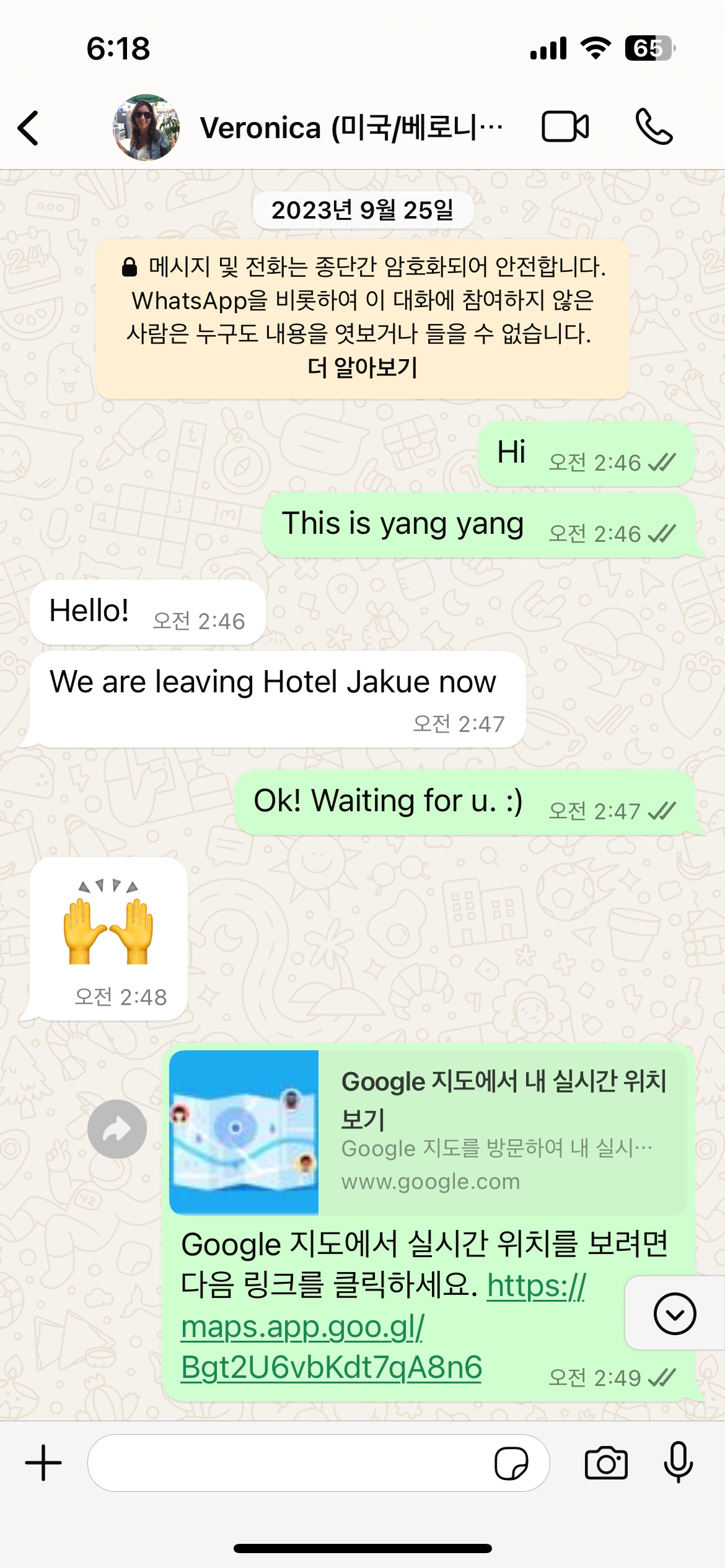 몇 번을 마주쳤지만 사실 연락처를 주고받지는 않았었는데, 우리는 이제야 연락처를 왓츠앱으로 공유하게 되었다.