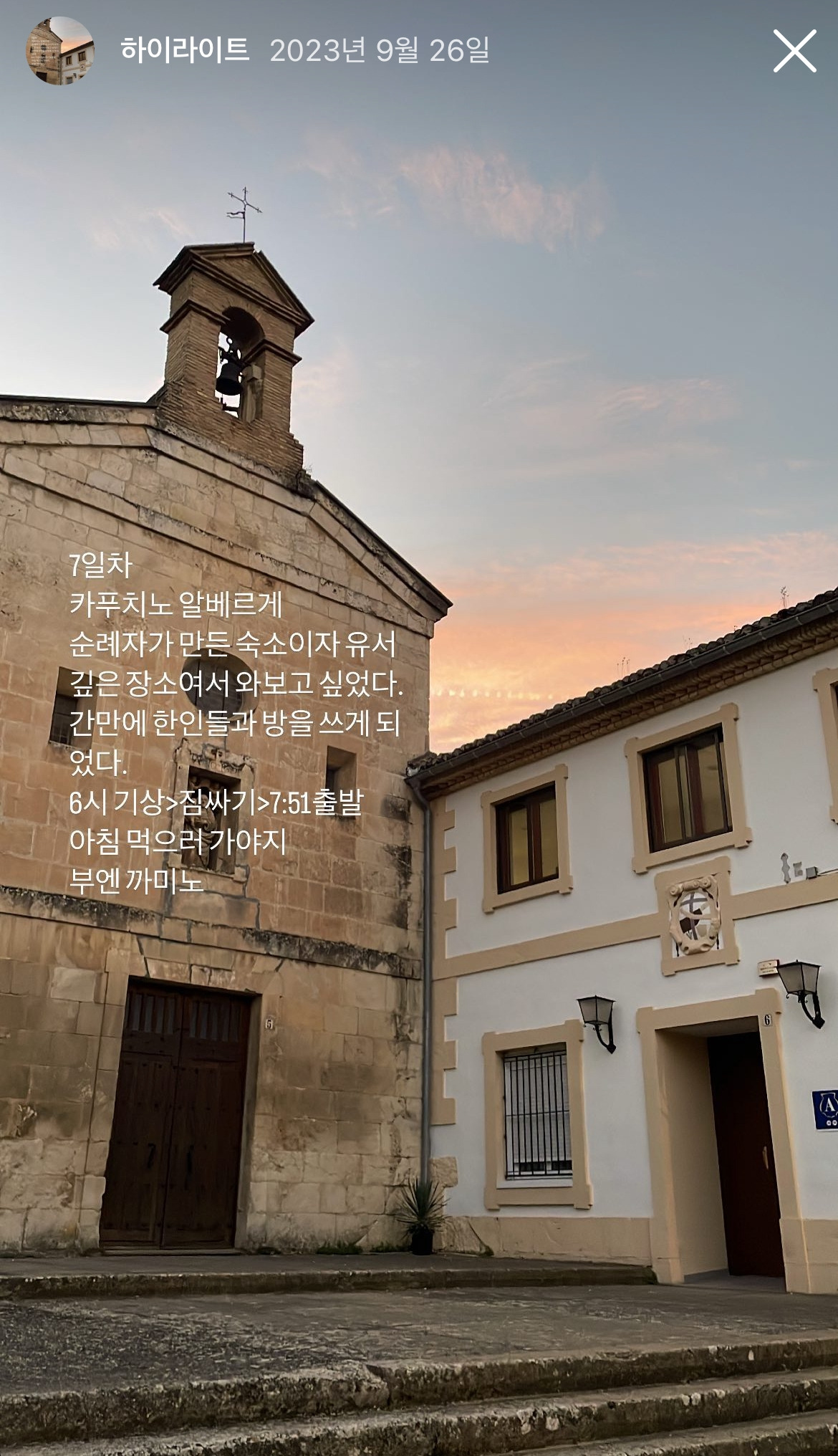 7시 51분 드디어 출발 카푸치노 알베르게도 안녕이다.