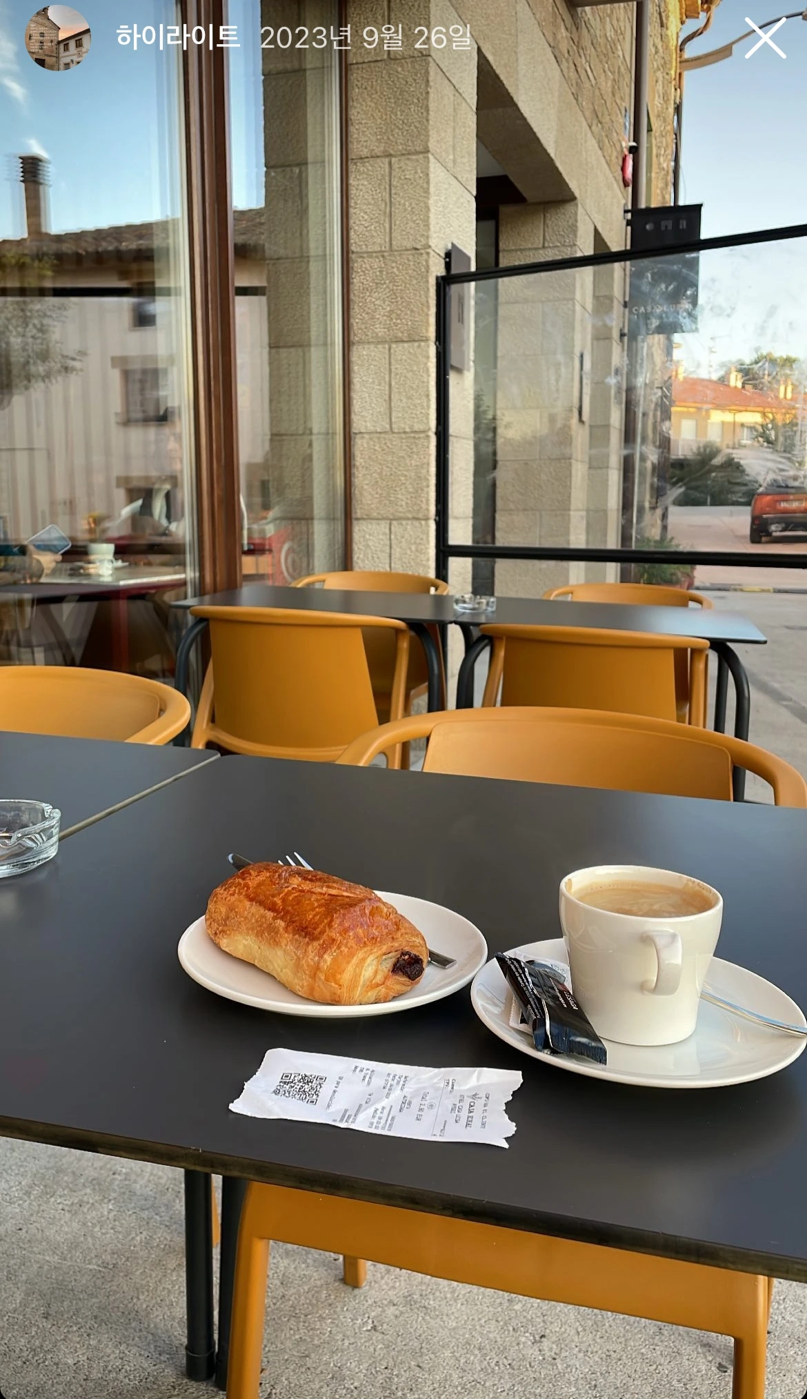 나는 빵오쇼콜라와 아메리카노를 시켜서 테라스에 앉아 아침식사를 여유롭게 즐겼다.