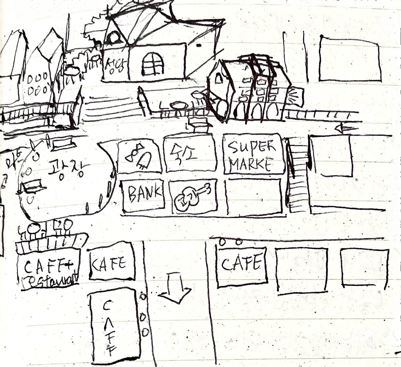 광장에는 늘 카페테리아와 마트, 과자가게, 정육점, 은행들이 모여 있다.