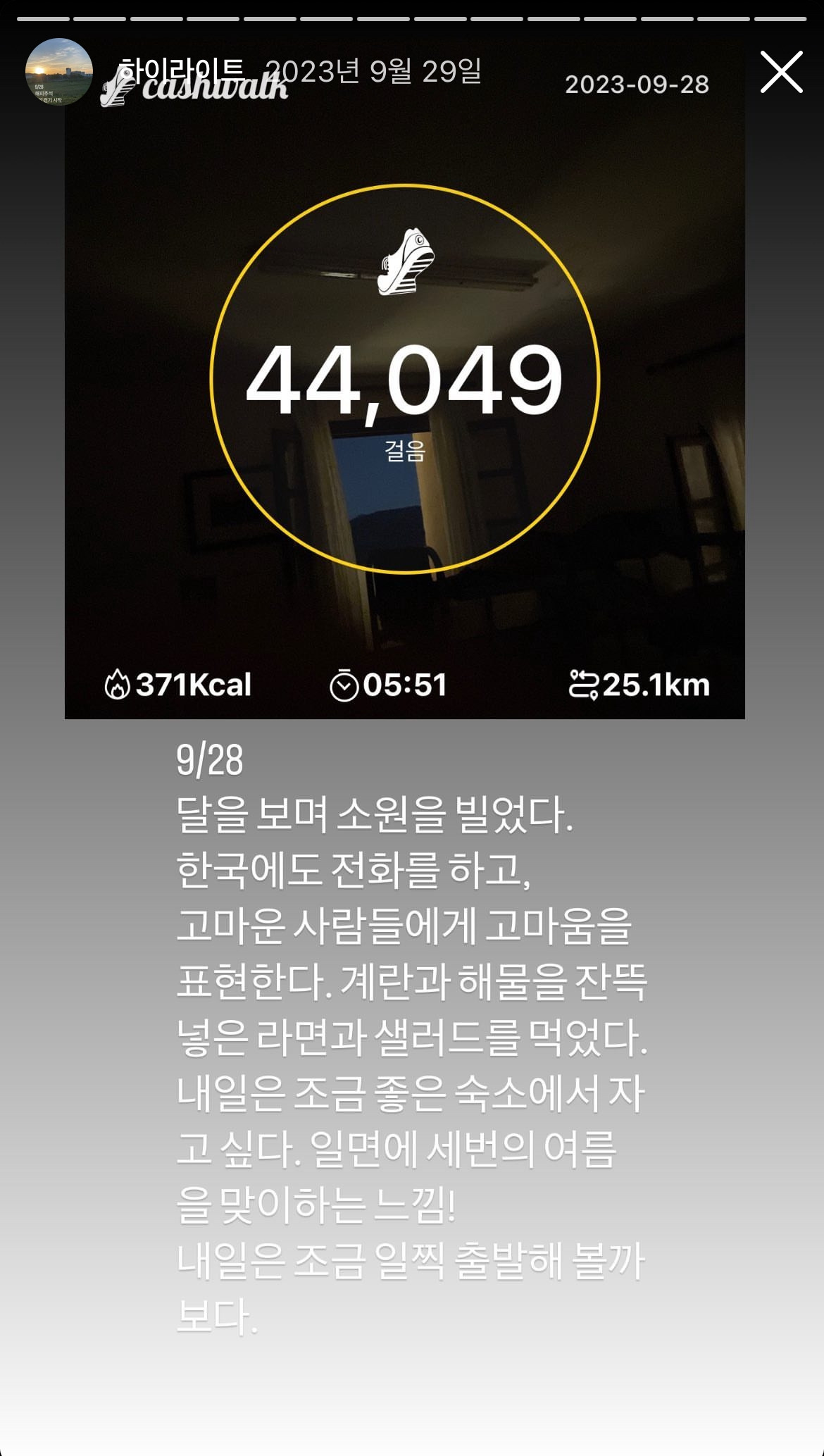 코골이에 물집에 근육통에 너무나 고되고 힘든 나날이 계속 되지만 자꾸만 나를 앞으로 나가게 만드는 것은 그 꿈을 현실로 만들어 가는 어둠속의 댄서 처럼 진짜 내 삶을 구현해내는 이순간이 비현실적인 것 처럼 꿈같이 느껴졌으니 말이다.