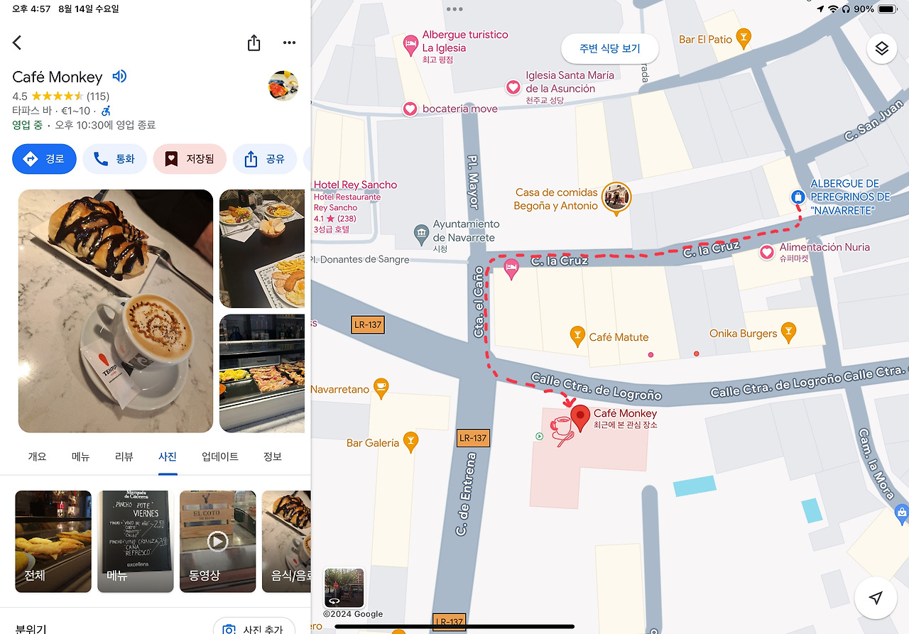 이 작은 음식점은 전천후로 카페에서부터 산티아고 순례자 메뉴까지 전부 취급을 했다.