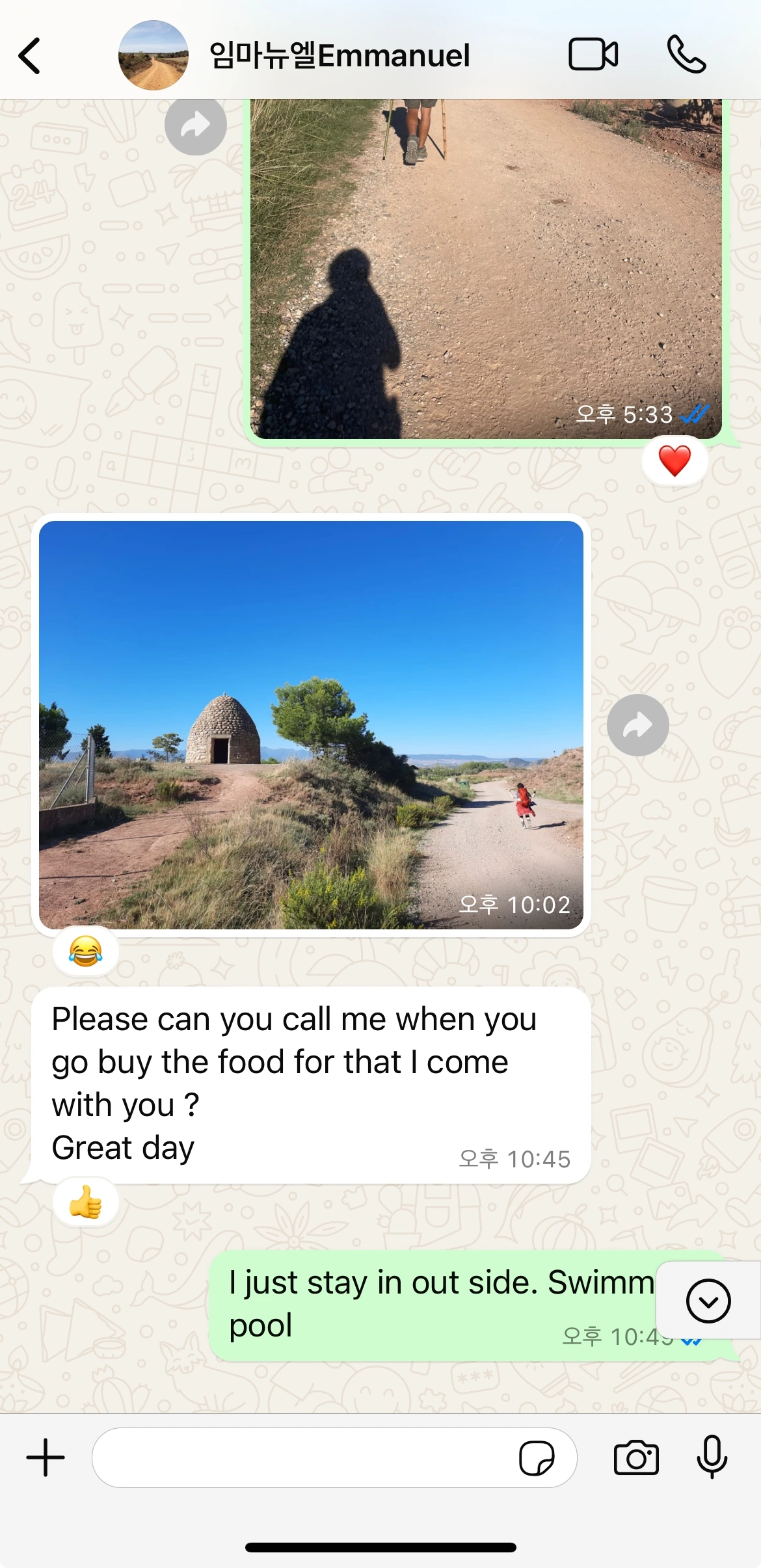 임마뉴엘은 저녁 식사를 함께하자며 연락을 달라며 톡이 왔다.