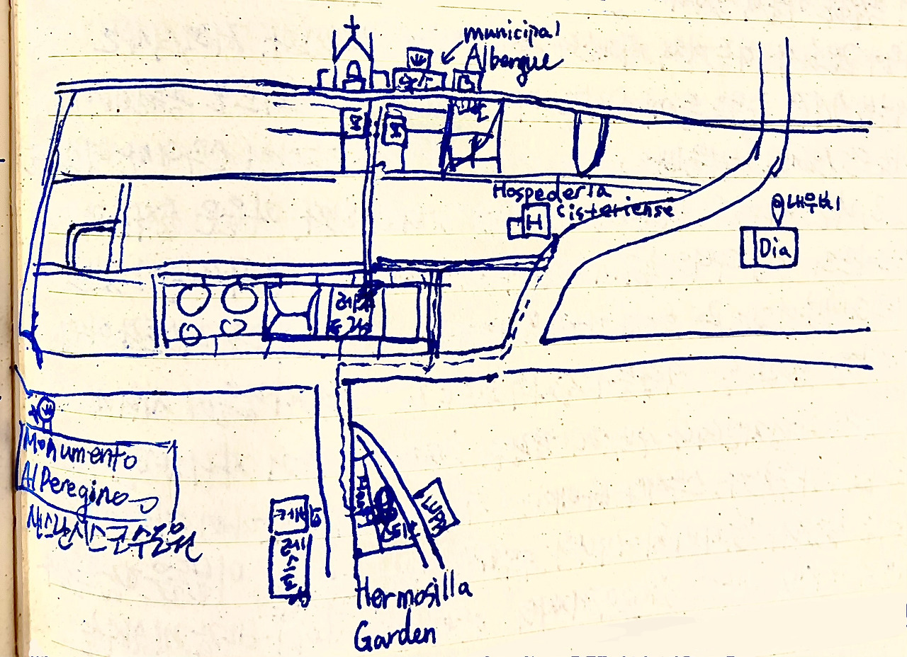 나는 식사를 마치고 근처 Dia 슈퍼마켓으로 길을 향했다. 휴식시간이지만 마을을 다 돌아다니자면 하루 1만 보는 기본으로 걷는 게 순례자들이다. 버스로 갈 거리의 대부분을 자연스럽게 걷는 게 일상화돼서 그런 것 같다.
