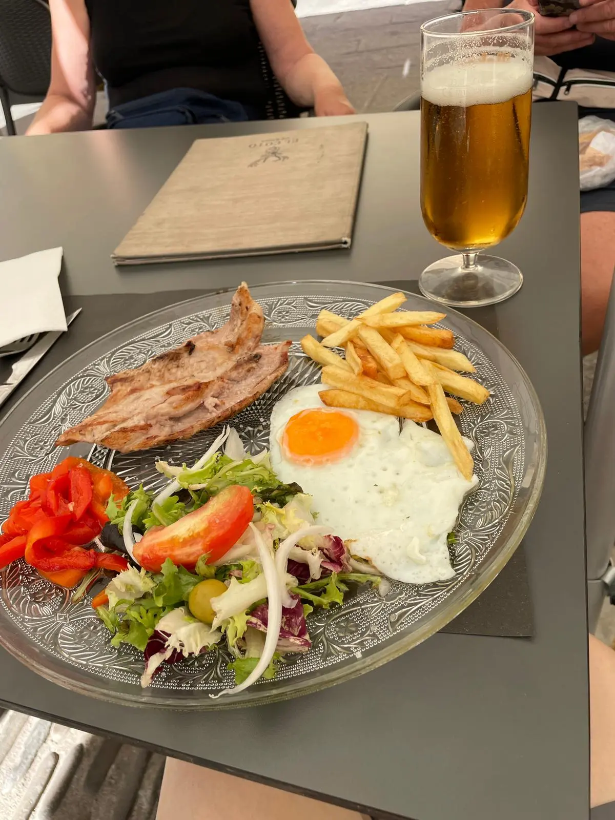 바로 알베르게 옆 대성당 구경을 마치고는 성당 한가운데 위치한 광장 테라스에 앉아 산티아고 메뉴를 주문했다.