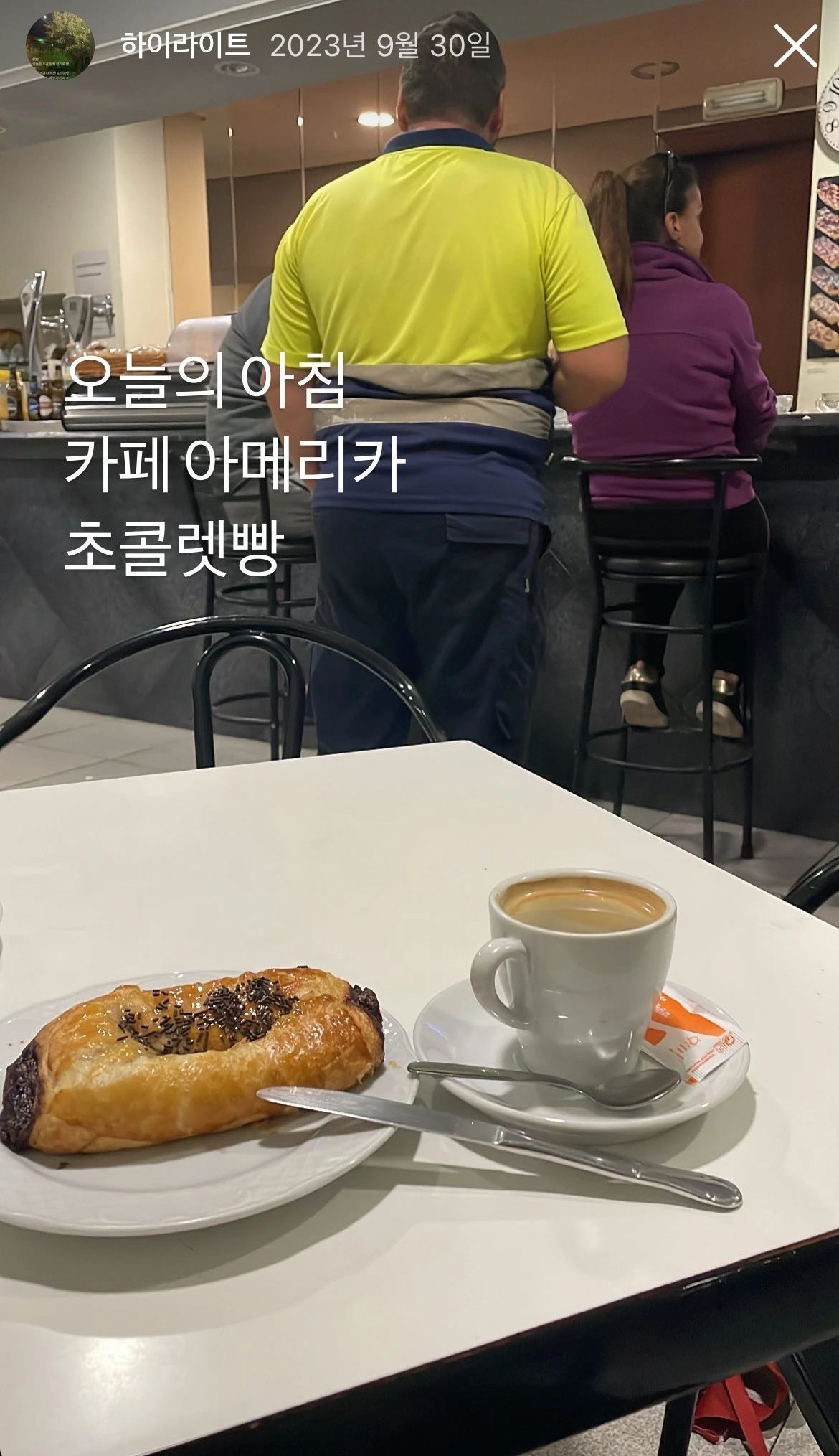 나는 빵 오 쇼콜라와 카페 아메리카노를 먹고 임마뉴엘 소식을 스티브에게 전했다.