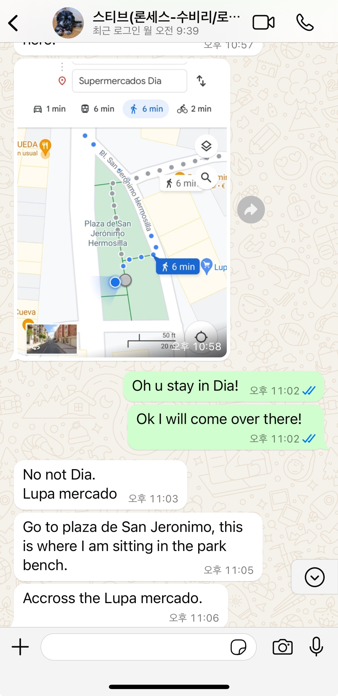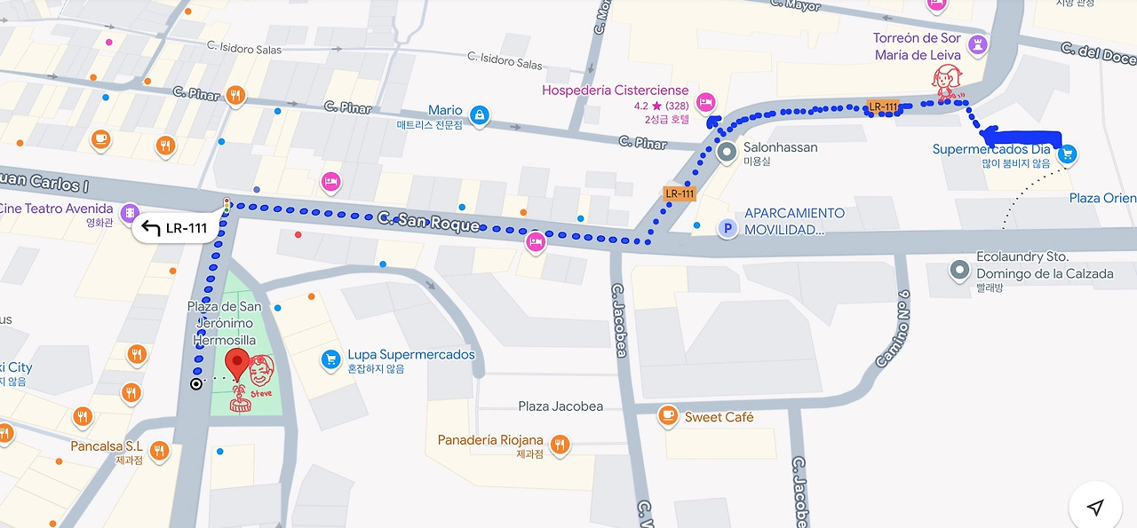 내가 있는 Dia 슈퍼마켓에서 스티브가 있는 곳 까지는 구글 안내와는 다르게 출구가 없는 골목들이 꽤 있기 때문에 정말 삥 둘러서 슈퍼를 들렀다.