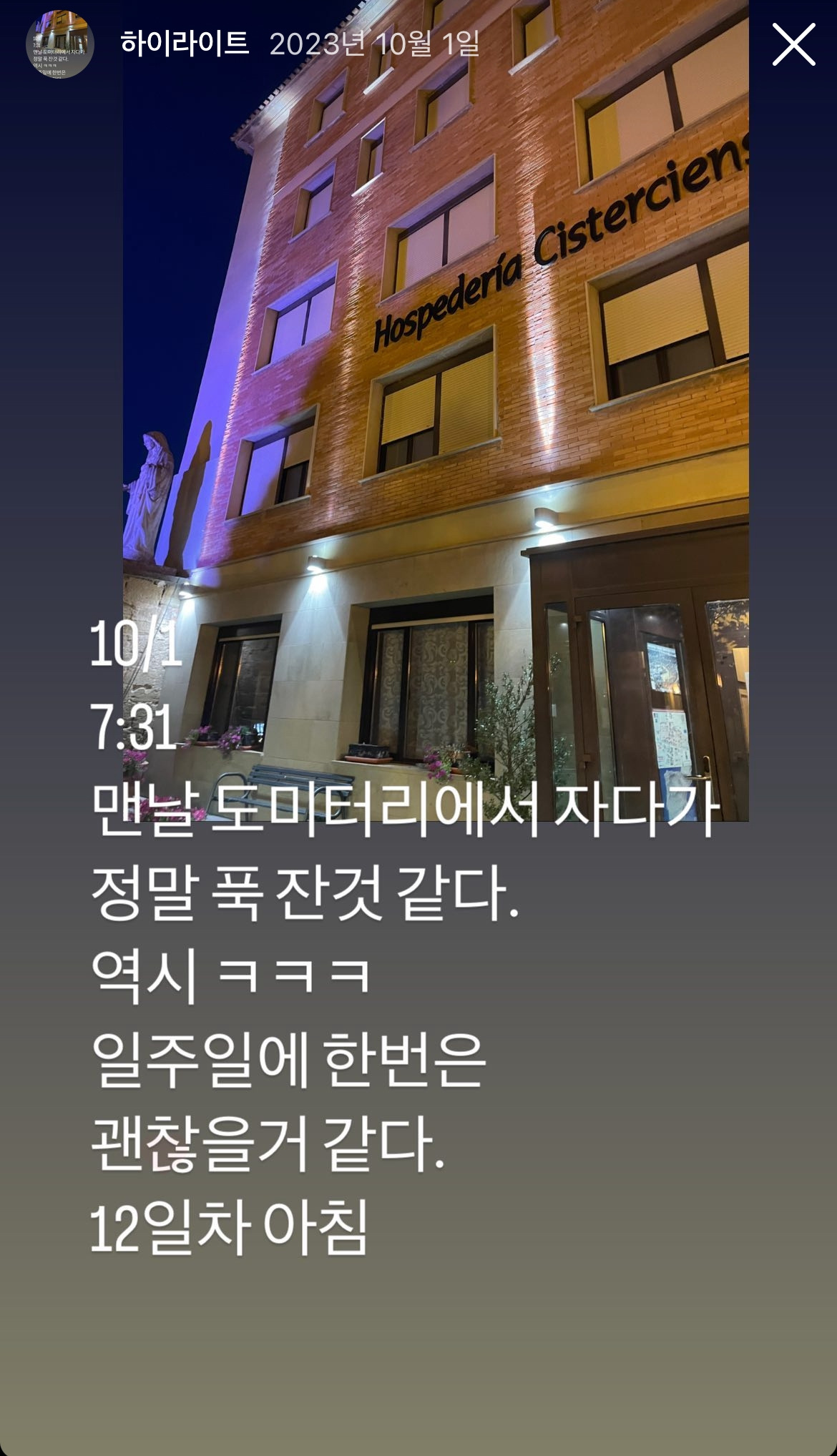 이 풍경을 보고 있자니 피로가 누구러지는 듯했으나 숙소를 찾아다니는 순례자 무리들을 발견하고는 나도 그 틈을 따라 숙소를 알아봐야 한다는 걸 깨달았다.