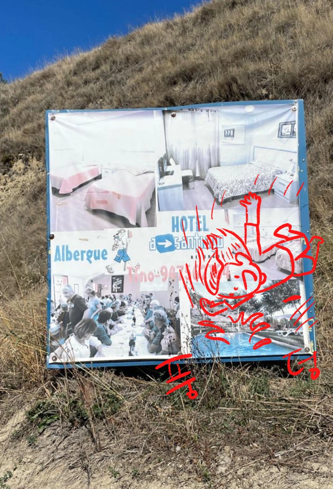 마을에서 1KM 이상 거리가 있었기 때문에 마을 분위기를 못 즐기는 게 못내 아쉬웠다. 그런 걸 따질 만큼 여유 있는 상황이 아니었다. 주말이라 작은 마을은 사람들로 붐볐고 미리 예약한 순례자와 동키서비스로 자동 체크인이 된 경우까지 이런 이유로 방은 이미 예약이 꽉 찬 상태였다.